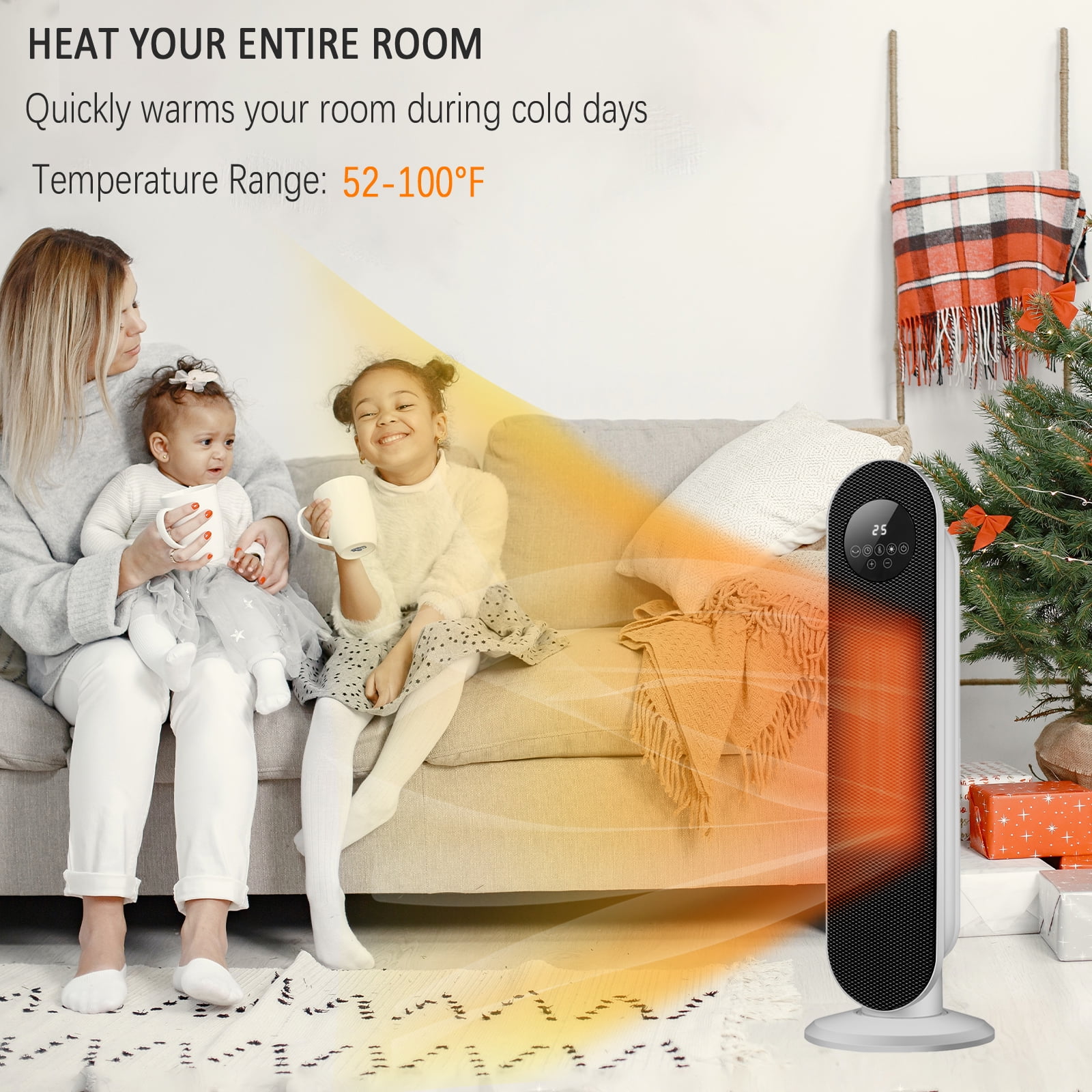 SUGIFT 26″ 1500W Electric Portable Oscillating Ceramic Space Heater Tower with Digital Display, White