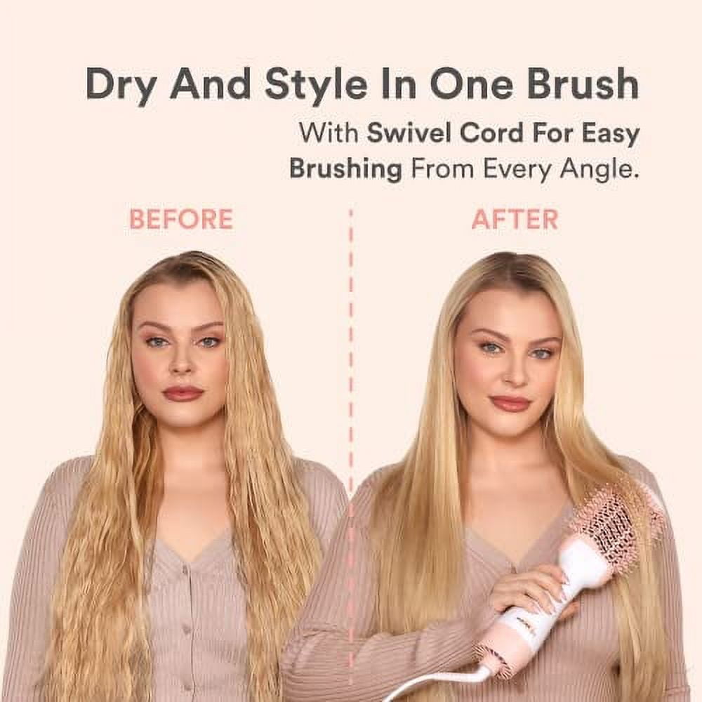 Sheu2019s cool. Sheu2019s hot. Sheu2019s the best thing youu2019ve ever bought. With nylon bristles, 3 temperature settings, an LED indicator, and ceramic titanium plates to protect your hair, Insert Blowout Here blow dryer brush will be your new hair BFF. Sheu2019s also equipped with an ION generator for a faster drying process so you can style your hair and still have time to spare. Get the salon blowout at home at a fraction of the cost with INH’s blow dryer brush. SETTINGS:u00a03 heat speed settings for styling flexibilityWATTAGE:u00a01100-Watt powerCOLOR:u00a0Salmon pink with white grip handleSIZE:u00a010.1 inches (L) x 11.4 inches (W) x 4.1 inches (H)SAFETY PLUG:u00a0ALCI safety plugs are ground-fault interrupters built into appliance cords and are designed to prevent electrical shocks.Unit is designed for 120 Volt USA outlets only.1 year manufacturers warranty.