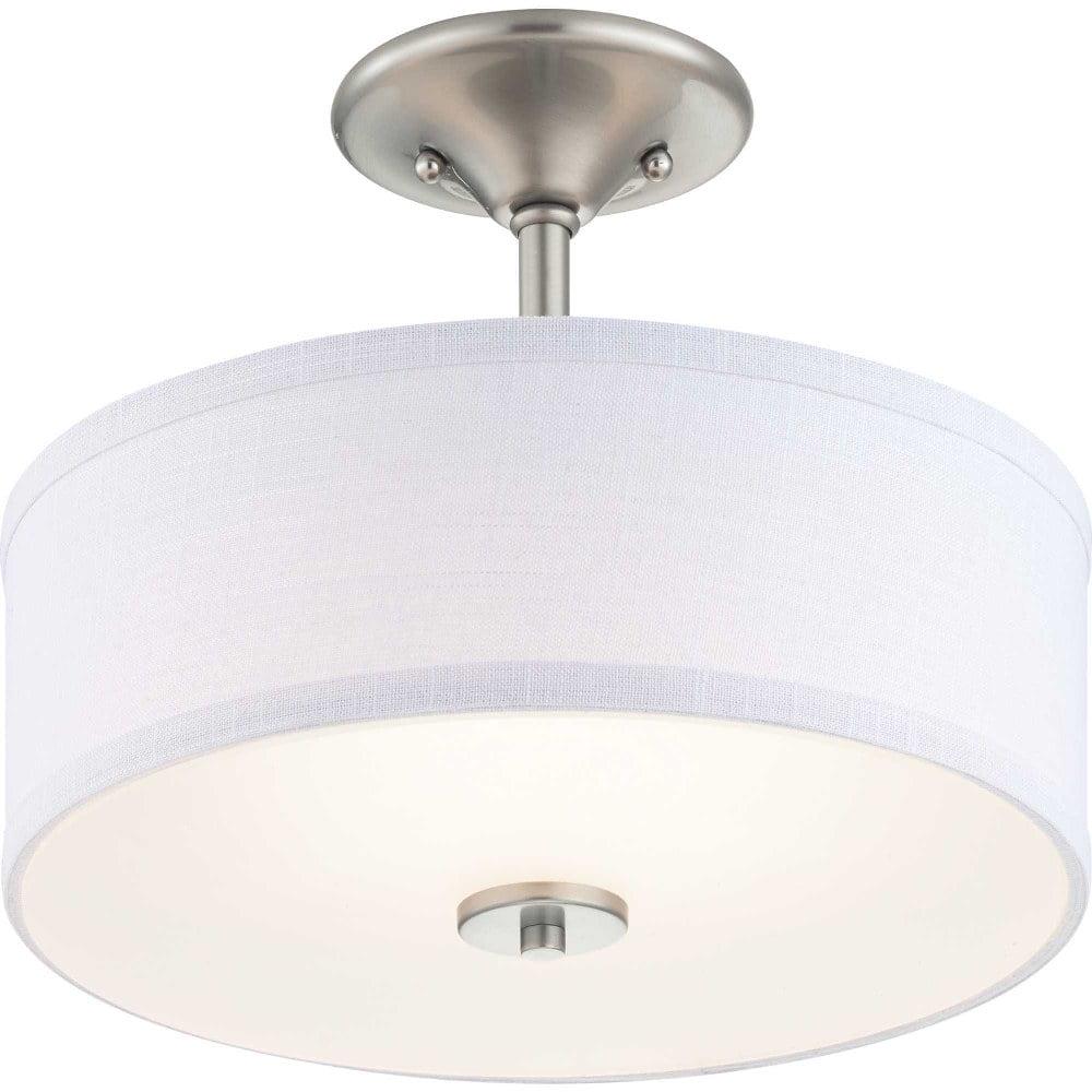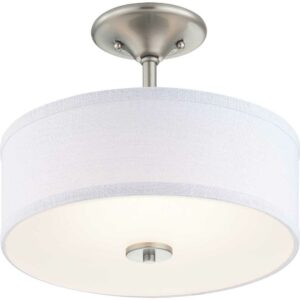 Harkening back to a simpler time, the Inspire Collection freshens traditional forms with flowing lines. The LED semi-flush fixture features an etched glass diffuser with a summer linen shade finished with Brushed Nickel details. This fixture is suitable for a variety of design styles, including Modern, Traditional and Farmhouse and the simple design is a perfect complement to a variety of fixture collections.