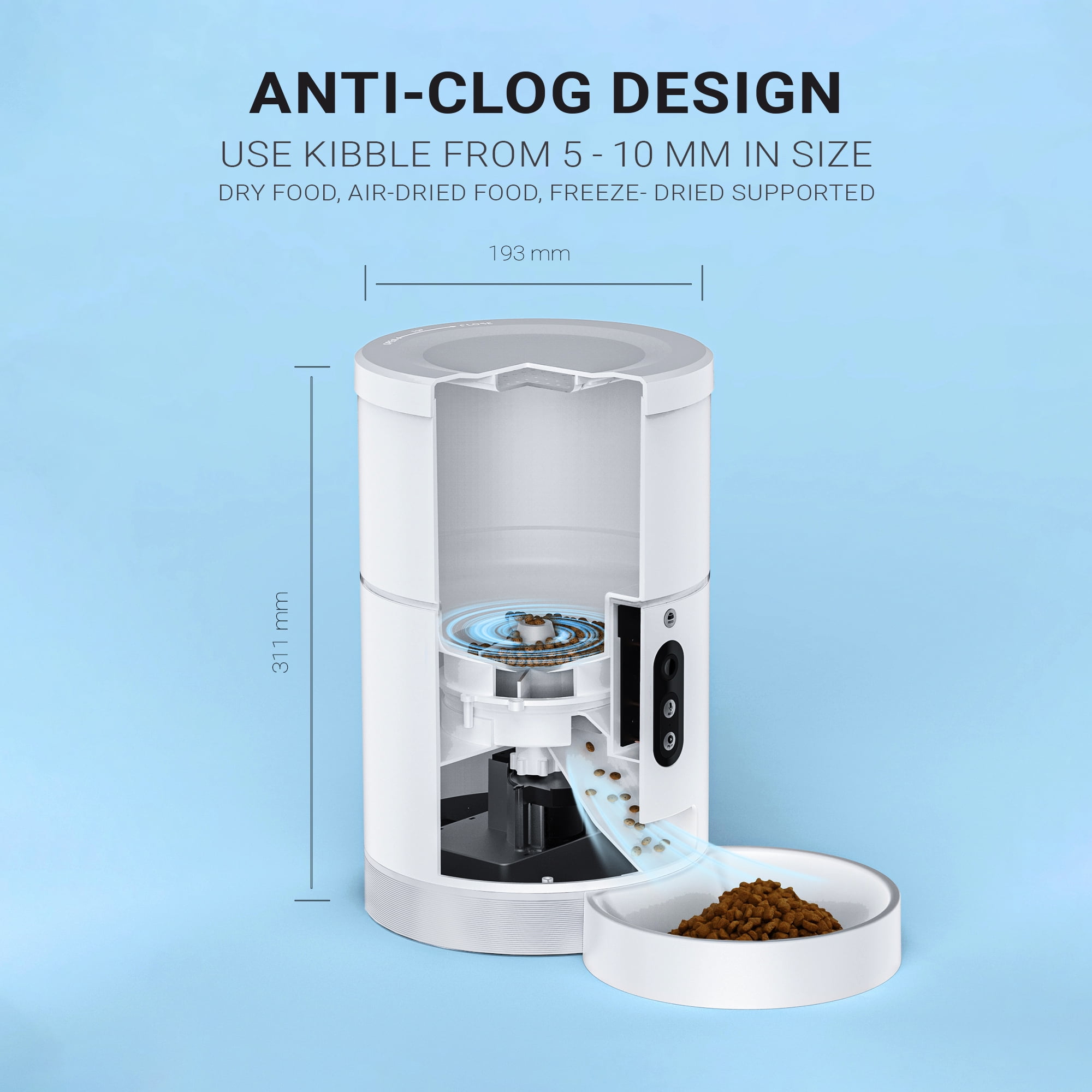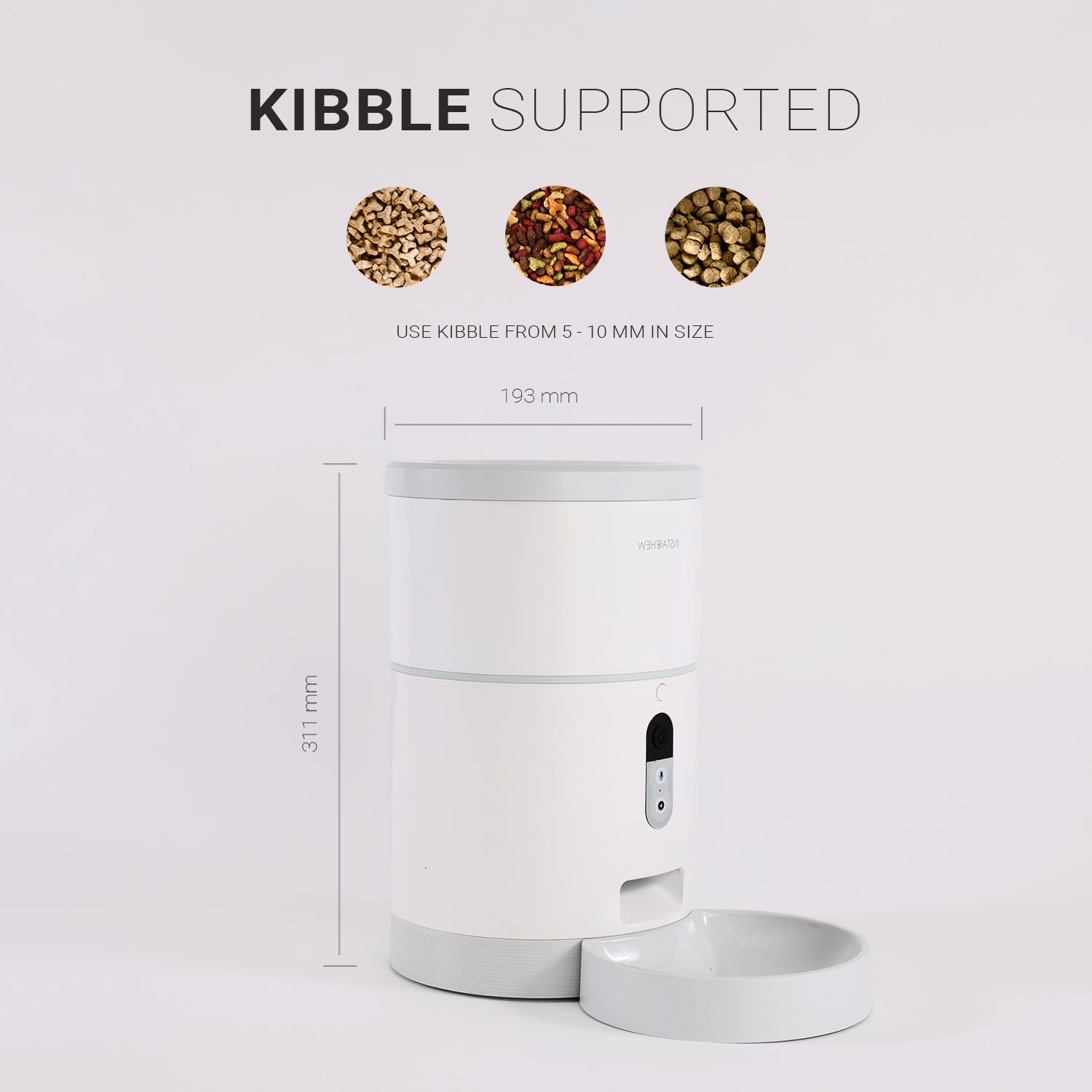 Interactive App Enabled Feeding: Use the Automatic feedings option to serve your pet according to your set schedules. Instant feed function allows you to feed your pet immediately from anywhere in the world by the “Instachew Infinity” APP. HD Camera: The Purechew Smart Pet Feeder has an HD camera with night vision, motion detection, video recording, and two-way audio. Kibble Supported: Use kibble up to 10 mm in size. Portion Control: Choose the right amount of food for your pet, using the portion control feature. Storage Capacity: Store up to 4 L of food, always sealed and fresh! Plenty of food to feed your cats and dogs. SMARTPHONE NOTIFICATIONS: When the pet feeder is running low or empty, a notification will be sent to your smartphone. 5GHz and 2.4GHz COMPATABLE: The latest technology now allows it to operate on both 5GHz and 2.4GHz which can reduce latency. SATISFACTION GUARANTEED: It is our mission to provide the highest quality products to our customers. In case of any query feel free to contact us at [email protected]