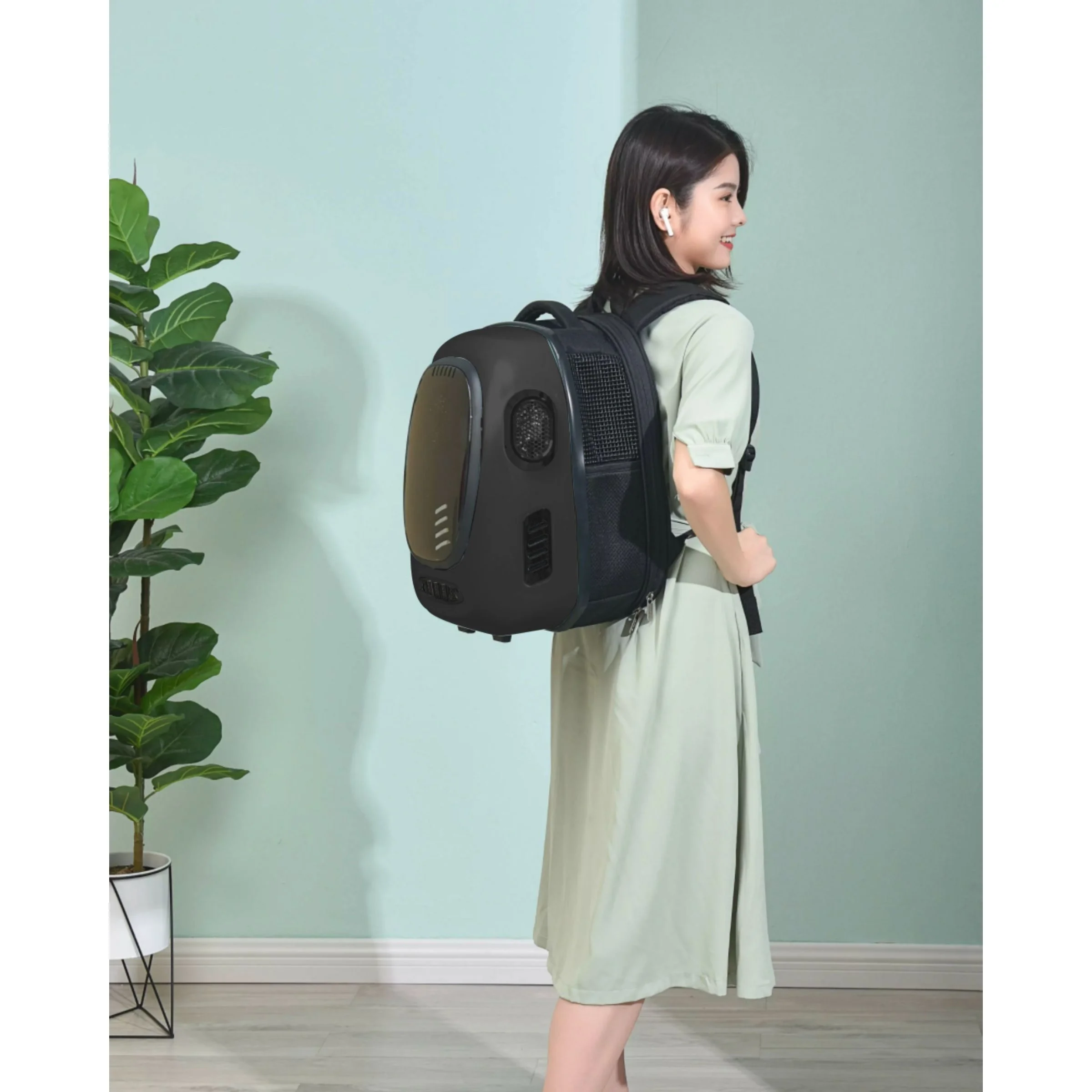 Trekpod Smart Pet Carrier with Built-in breathable Fan Black for Small Pet Travel in style with the INSTACHEW Trekpod Pet Carrier for cats and small dogs which is App enabled. With modern design, your pets will be delighted to leave the house! The intelligent temperature control feature allows for walks with your pet in the warm weather and cold. Your pet has every reason to be comfortable inside the ventilated hard-sided carrier, convenient size, shock reduction system and built-in fan. The carrier’s shock absorption system lets your pet enjoy traveling with minimum movement and force. With optimal ventilation and comfort, take your furry friend everywhere while they enjoy the world around them.