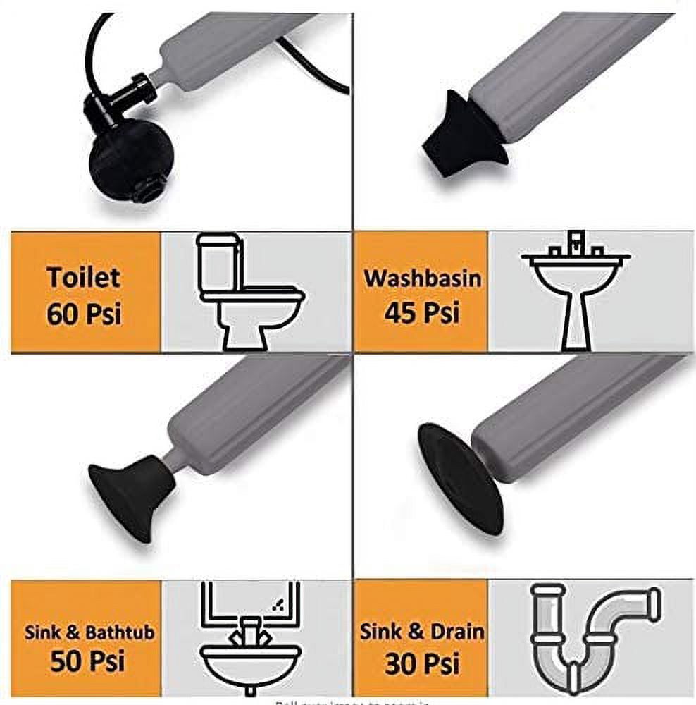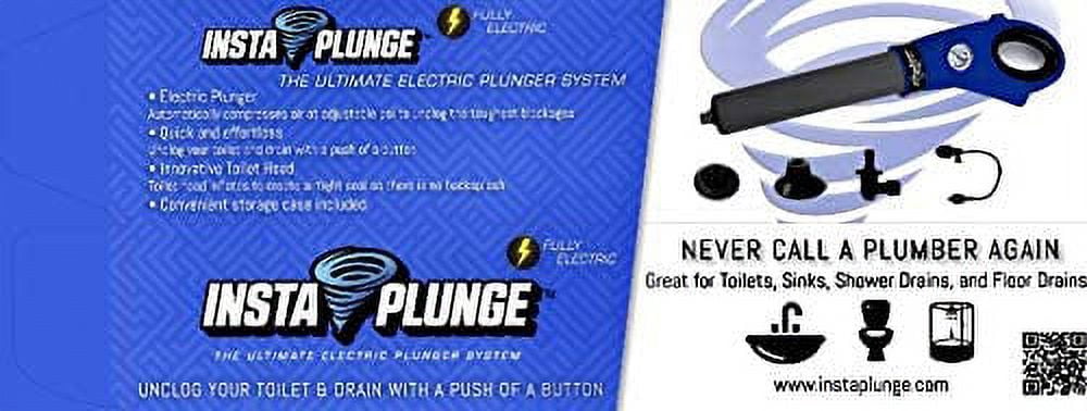 Free your pipes from clogs with just the push of a button! No more getting down on your hands and knees with a manual plunger or guessing with harsh, caustic chemicals that don’t do the job and cause further damage. Experience effortless freedom from clogs with our electric drain snake plunger system! Our electric sink plunger quickly and easily clears clogs with a press of a button. This drain unclogger works by automatically filling up with air pressure and delivering a blast of air to the pipe to clear any blockage and open it up. Solve clogs with minimal effort and no mess with InstaPlunge Electric Drain Snake Toilet & Sink Plunger System. With our electric toilet plunger, you can quickly get the job done and fix your clog in seconds. All you have to do is plug it in, adjust the PSI setting, unplug, and press the button, that’s it. Our drain cleaner also comes with a convenient PSI guide for added convenience. Our eco-friendly electric drain clog remover is suitable for all pipes, with no harsh chemicals used, providing effective maintenance for all drains. It comes with multiple attachable heads that fit any type of drain and a brand-new inflatable head to form an airtight seal. A storage bag is also included to house the plunger and all its accessories neatly. Crafted from durable ABS plastic, our electric toilet drain clog remover provides long-lasting use and the confidence to solve clogged drains or toilets easily and without much effort. For optimal results, it is best used while water is still present in the affected area. Please make sure to unplug the plunger prior to clearing the drain. Set yourself free from clogged toilet and drain problems. Add the InstaPlunge Electric Drain Snake Toilet & Sink Plunger System to your cart today.