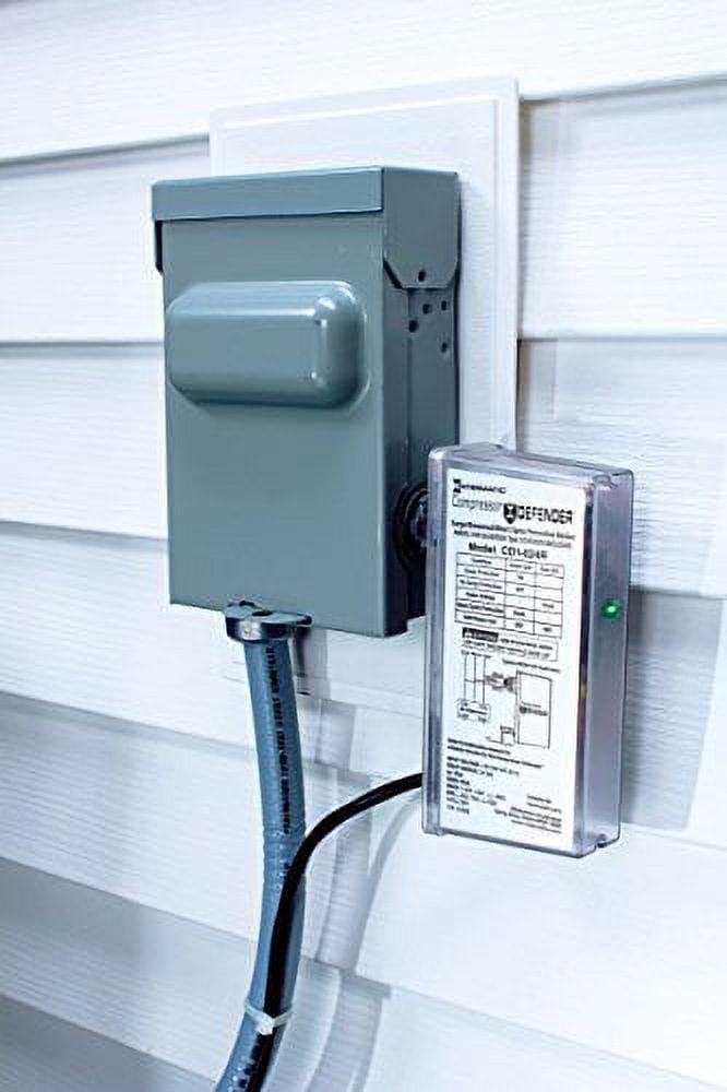 Power disturbances damage air conditioner compressors without warning. Let the Compressor Defender by Intermatic take the hit so air conditioners are never interrupted. The all-in-one Compressor Defender device protects compressors and circuit boards in residential and light commercial applications from brownouts, surges and short cycles. The protective device can be installed inside a condensing unit or on an outdoor compressor. LED indicators provide real-time status updates for quick and easy troubleshooting. Compliant with AHRI Standard 110-1012 Range B2 for voltage drop protection. Specifications: 120-240 VAC Single Phase 60 Hz | Normally Closed Relay 24 VAC | Type 2 SPD | Control Output Current Rating: 2A @ 24 VAC, isolated N.C. contact | Voltage Protection Rating: L-N/G: 700, L-L: 1200 | Nominal Discharge Rating: In (10 kA) |Max Continuous Over-Voltage (MCOV): L-N/G: 150V, L-L: 300V | Short Circuit Current Rating: 20kA | Under-Voltage Response Time: 3 line cycles Operating Temp: -40°F to 158°F (-40°C to 70°C).