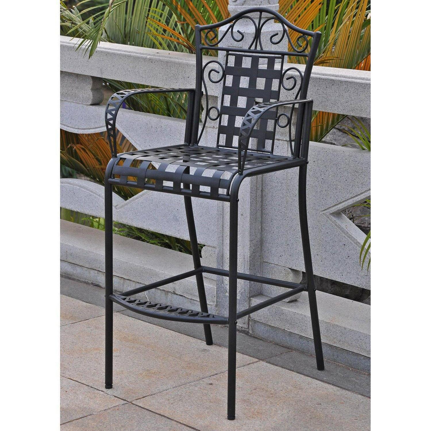 A great accent piece for any outdoor setting, the International Caravan Mandalay Outdoor Bar Stools – Set of 2 are just what you need to unwind after a long day. Designed to work well with most bars and bar-height tables, this set of two chairs is the perfect blend of elegance and enduring function. Finished in several available shades, these sturdy wrought-iron chairs come complete with weather and UV light fade protection to ensure they look as good as new even after years of use. In addition to being comfy, they also grab attention with their partially lattice backs and elegant scroll motifs. All-round footrests make getting in and out of the chairs a breeze. Built to last, this set of two bar-height chairs is just what you need to jazz up all your outdoor get-togethers. Please note: This item is not intended for commercial use. Warranty applies to residential use only.