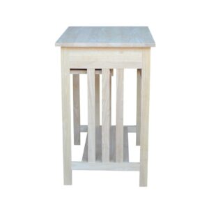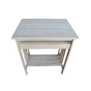 The Mission Computer Stand is the perfect storage solution for computer equipment and peripherals. Ideal for use in home offices, kitchens, dens, and bedrooms, this stand is constructed from solid parawood, which is a durable Asian hardwood that’s as strong as maple and a favorite in the furniture industry. It arrives at your door unfinished and ready for a coat of paint or varnish. Finish it to match your decor or leave the wood bare for a spare, fresh look. This cart has open slatted sides and a slatted lower shelf that’s perfect for holding printers or computer towers. The spacious desktop features a slide-out keyboard tray below, which is just the right height for working. This stand measures 26W x 20D x 32H inches, and it requires some assembly.
