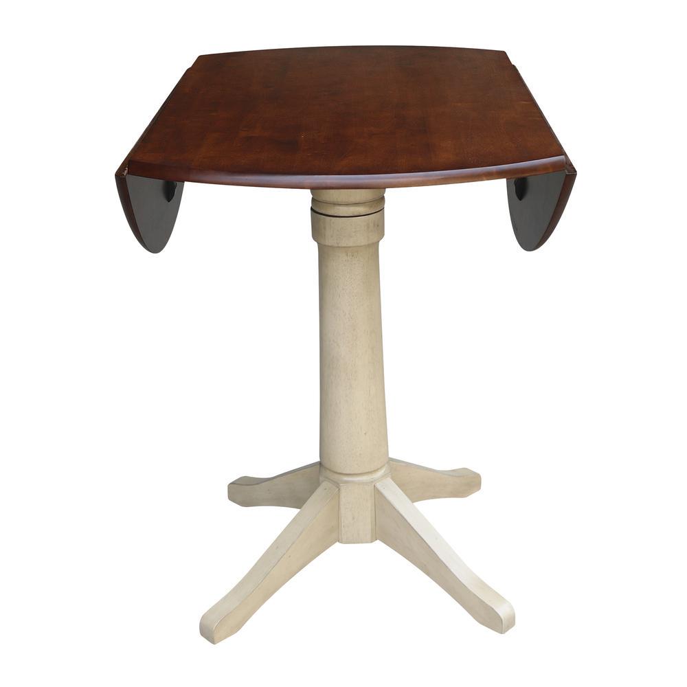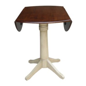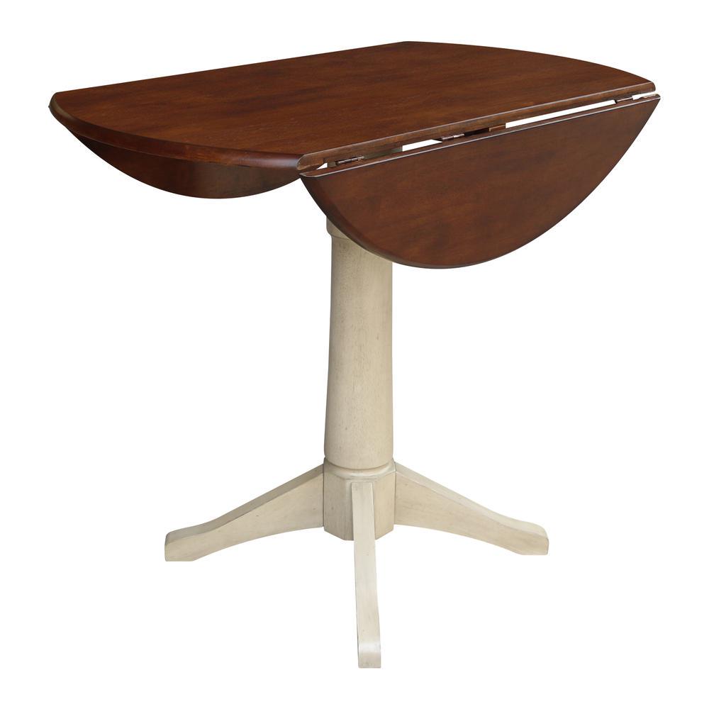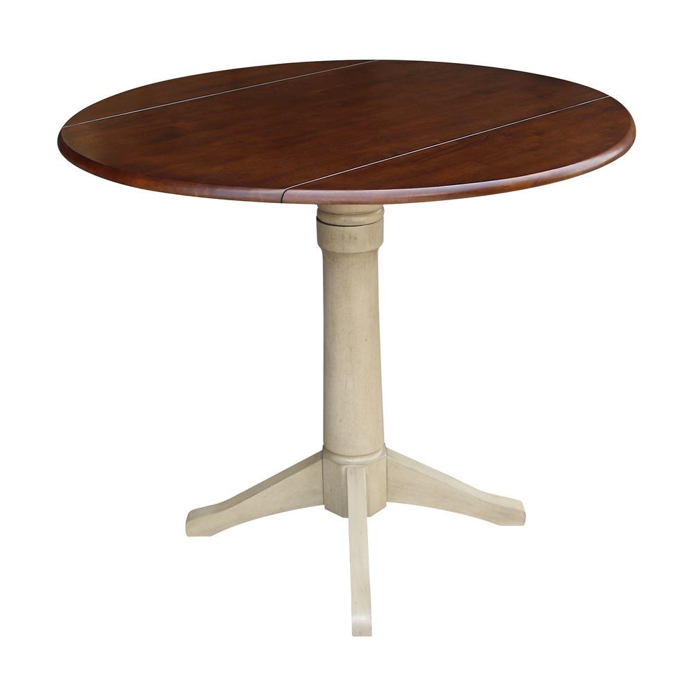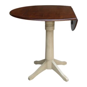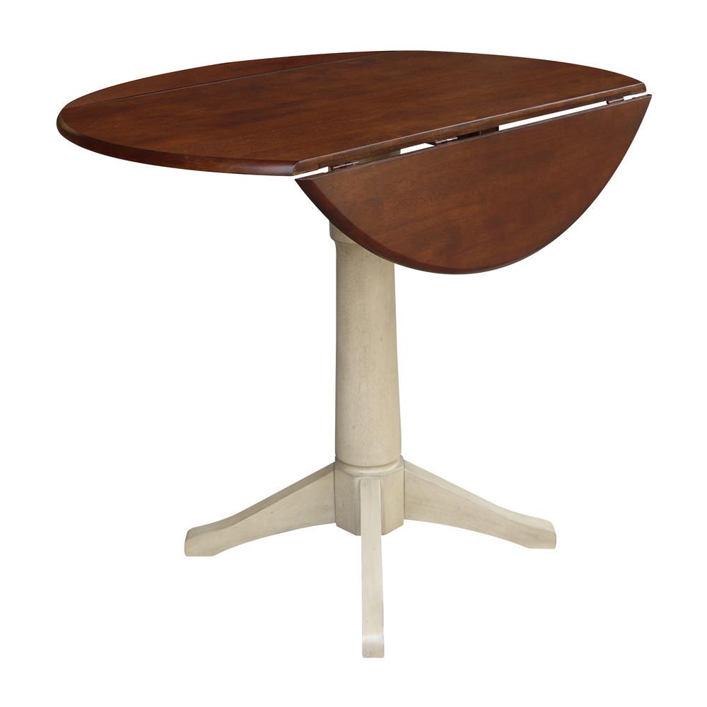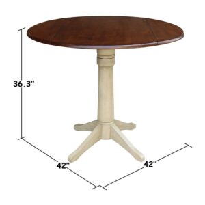 International Concepts 42 Round Dual Drop Leaf Pedestal Table – 36.3 H, Almond/Espresso Finish