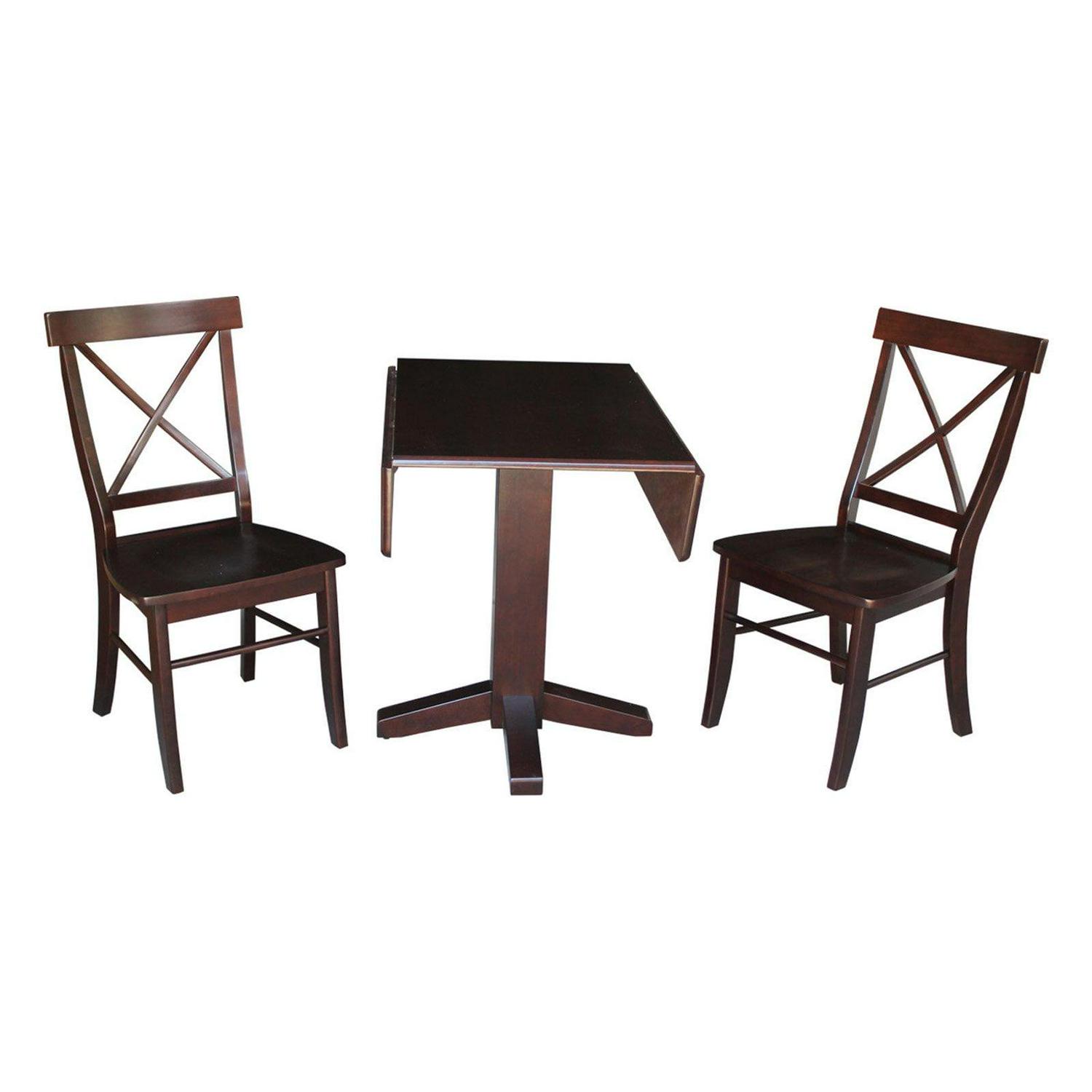 International Concepts Dual Drop Leaf Square 3 Piece Dining Table Set with X-Back Chairs