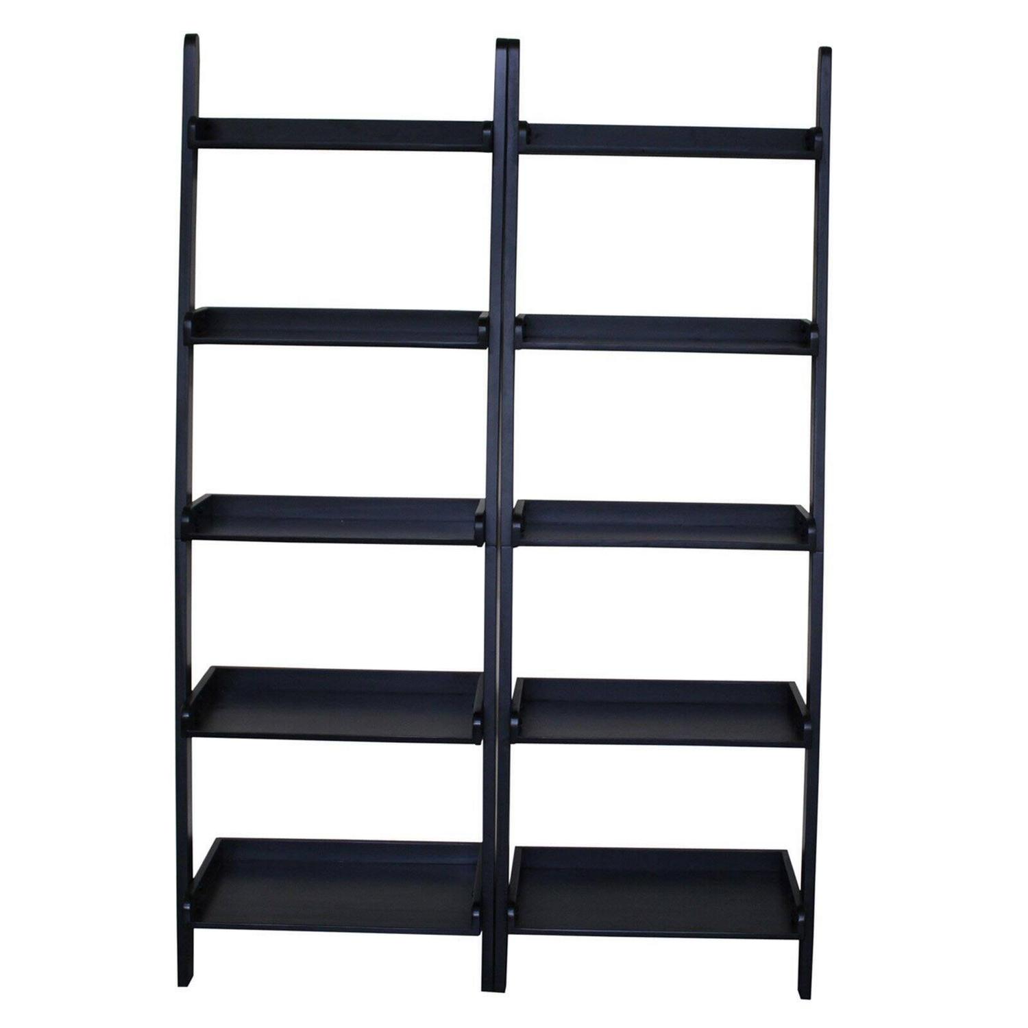 Lean To Shelf Units With 5 Shelves, Set of 2 Pieces, Espresso