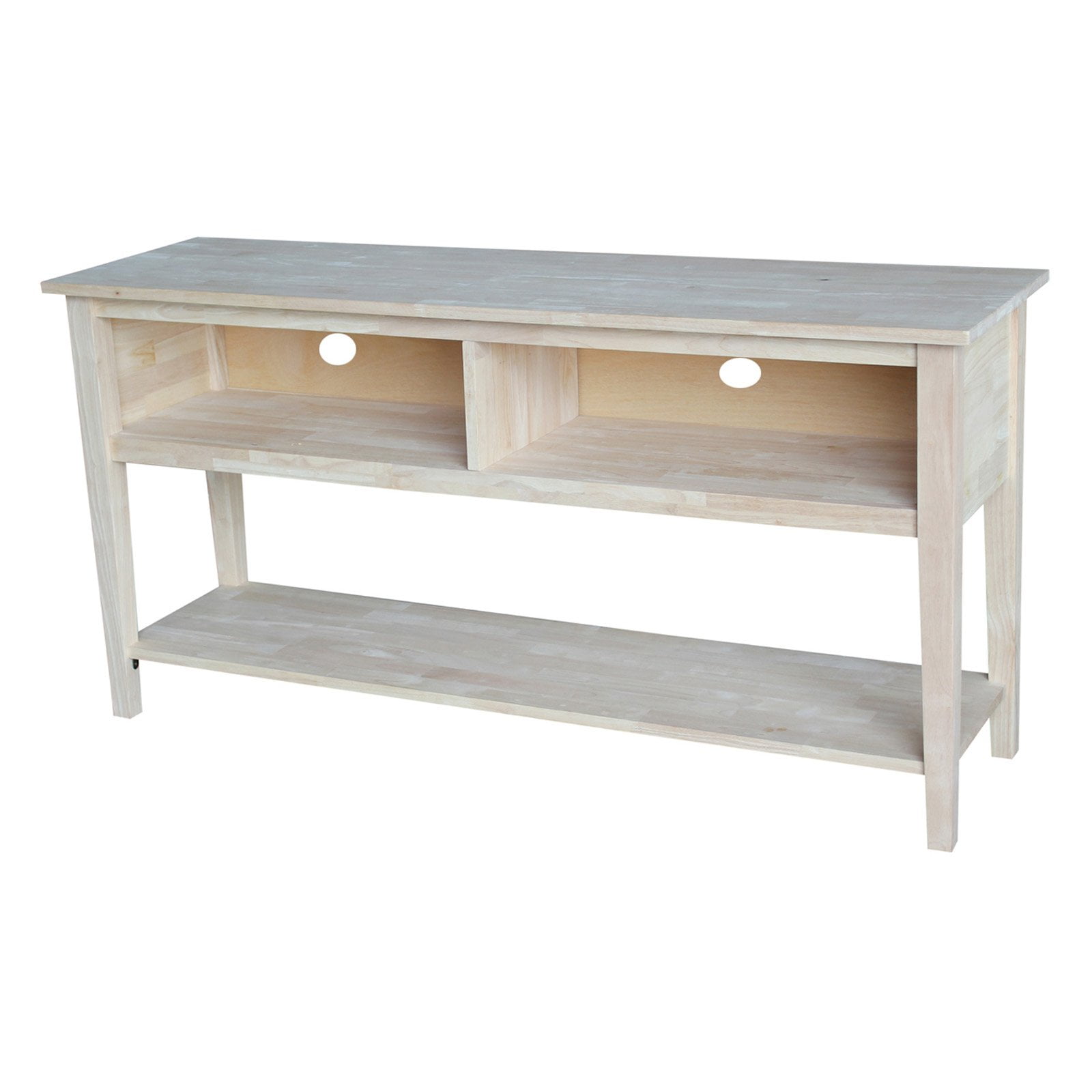 This classic, well-built TV Stand/Entertainment Center from International Concepts is the perfect addition to your family room, living room or bedroom. Made from solid wood, it is part of a high-quality collection of wood furniture that will easily complement any décor. Parawood – a hardwood known for its durable, strong, and environmentally friendly nature – is used to craft these customary, distinctive stands. Whether you are accommodating your home theater, or simply wanting to make more space in your TV room, this piece from International Concepts will accomplish just that! These unfinished pieces are ready to be stained or painted in your choice of color.
