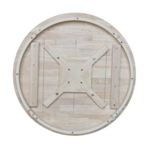 Personalize your dining space with the versatile style of this charming counter-height pedestal table. Featuring a round design with a solid parawood construction, this sturdy table comes unfinished and ready to suit your decorative motif.