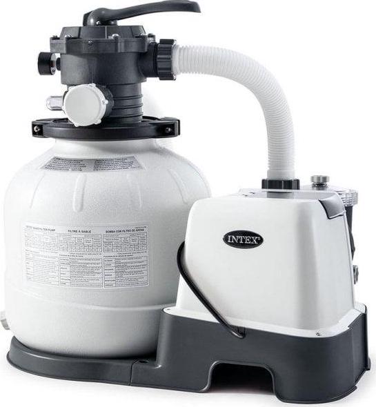 Keep your outdoor swimming setup clean, fresh and well-maintained by installing this Intex 1600 GPH Saltwater System & Sand Filter Pump Set. This model is designed for above-ground pools and offers plenty of advantages compared to cartridges and diatomaceous earth or DE pumps. It features a pump flow rate of 1,600 gallons of water per hour. The Intex saltwater system and sand filter pump is an efficient and low maintenance way of keeping your pool clean. It has a built-in 24 hour timer that makes it easier to maintain your pool and is equipped with a GFCI unit, which will automatically turn the machine off when its components come into contact with water. When it comes to handling sand, it has a 55 lb capacity. This saltwater system for above-ground pools requires virtually no maintenance except replacement of the sand every five years.