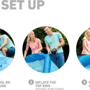 Stay cool and splash away with the Intex Easy Set Inflatable Swimming Pool. This air-filled pool will be a great escape for you and your family, especially on a scorching summer day. The round above-ground pool is easy to set up and sits nicely on any outside solid surface. Simply inflate the pool and watch friends and family swim, splash, or relax the day away. Measuring 15 feet in diameter and 42 inches tall, this pool is made to accommodate up to 8 people at a time. This backyard swimming pool provides the utmost durability by being constructed with 3-ply materials that resist puncture, ensuring that it will stand up to everyday use. During the off-season, simply deflate the pool for a hassle-free clean and storage experience. Plus, the included filter also makes for additional easy maintenance while the ladder, ground cover, and debris cover ensure you have everything you need for the perfect outdoor day. Bring water-filled joy to your friends and family this summer with the Intex Easy Set Swimming Pool. Disclaimer: Please review your HOA rules and restrictions before purchasing this product. Not all housing agencies permit private above-ground pools.