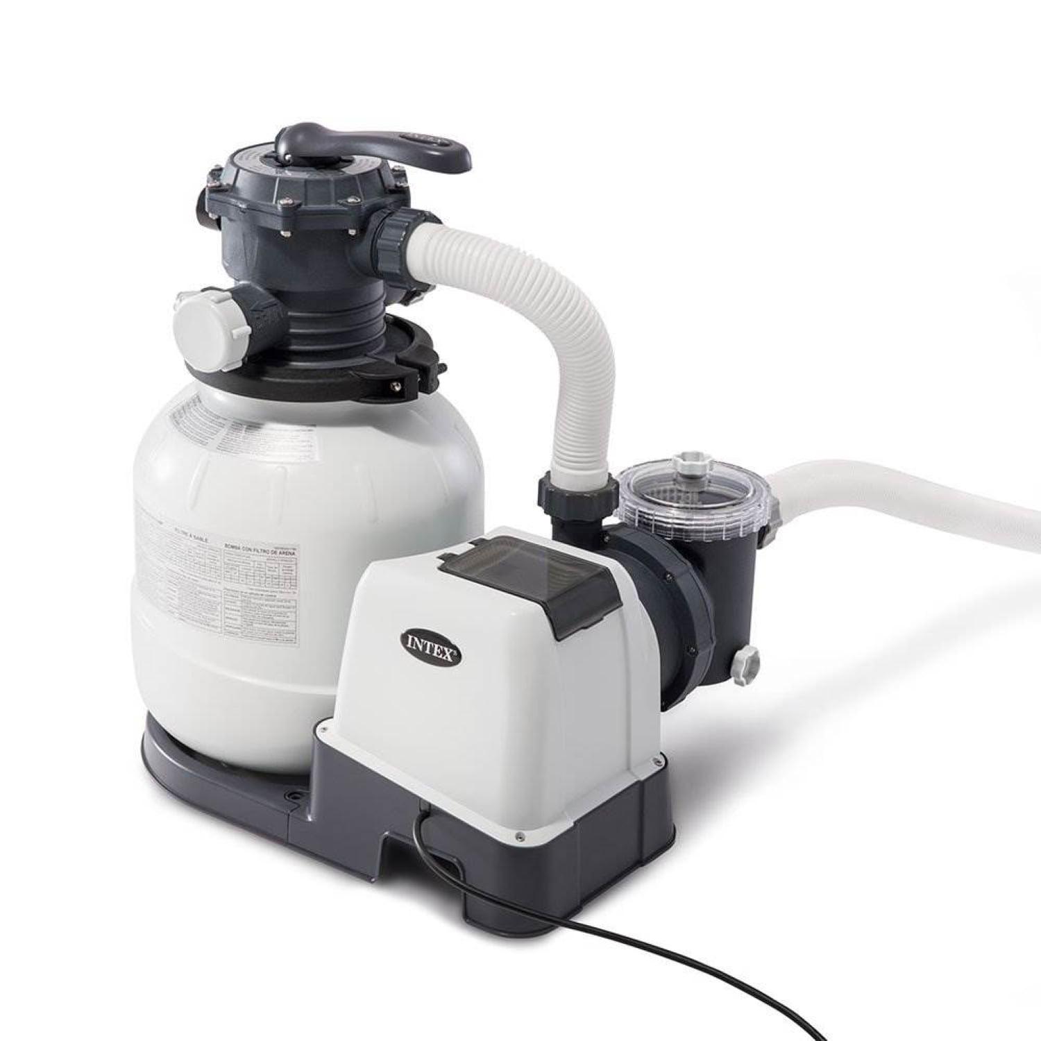 INTEX Krystal Clear Sand Filter Pump for Above Ground Pools with 2100 Gallons Per Hour Flow Rate, Improved Circulation, and Easy Installation The Intex 2100 GPH Above Ground Pool Sand Filter Pump with Auto Timer provides cool, refreshing, clear water, and less hassle every swim season. If you are tired of buying and replacing your pool filter cartridges, this filter is the one for you. With virtually no maintenance, your sand pump only needs replacement every five years. Just hook up hoses and plug in! This pump is a must have for any above ground pool(Partial assembly required). Hydro Aeration Technology improves circulation and filtration, improves water clarity, and increases negative ions in the water. This sand pump features a powerful motor, 6-function control, and a built-in automatic timer. The pool pump’s built-in 24-hour timer comes with 2 to 12 hour pre-set cycles for automatic operation; Timer adds to the hassle-free experience with maintaining a cleaner pool for you. It meets the UL standards as Intex designs, builds, and tests all its products to the highest standards with safety being the first order of business, and is an excellent upgrade to the filter cartridge system on your Intex Above Ground Swimming Pool. This filter works with pools that are easily set with a metal frame, and ultra frame, up to 12,800 gallons. Simple to use and easy to operate, this Intex sand filter will outperform your standard cartridge filters and keep your pool crystal clear.