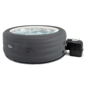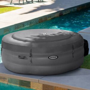 Intex 28481E Simple Spa 77in x 26in 4-Person Outdoor Portable Inflatable Round Heated Hot Tub Spa with 100 Bubble Jets Filter Pump and Cover Gray