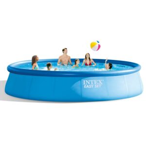 – Make a splash all summer long with the Intex Easy Set pool. Easy to assemble, easy to maintain, and fun to own. Simply spread out on a level ground, inflate the top ring, fill the pool with water, and enjoy the fun.