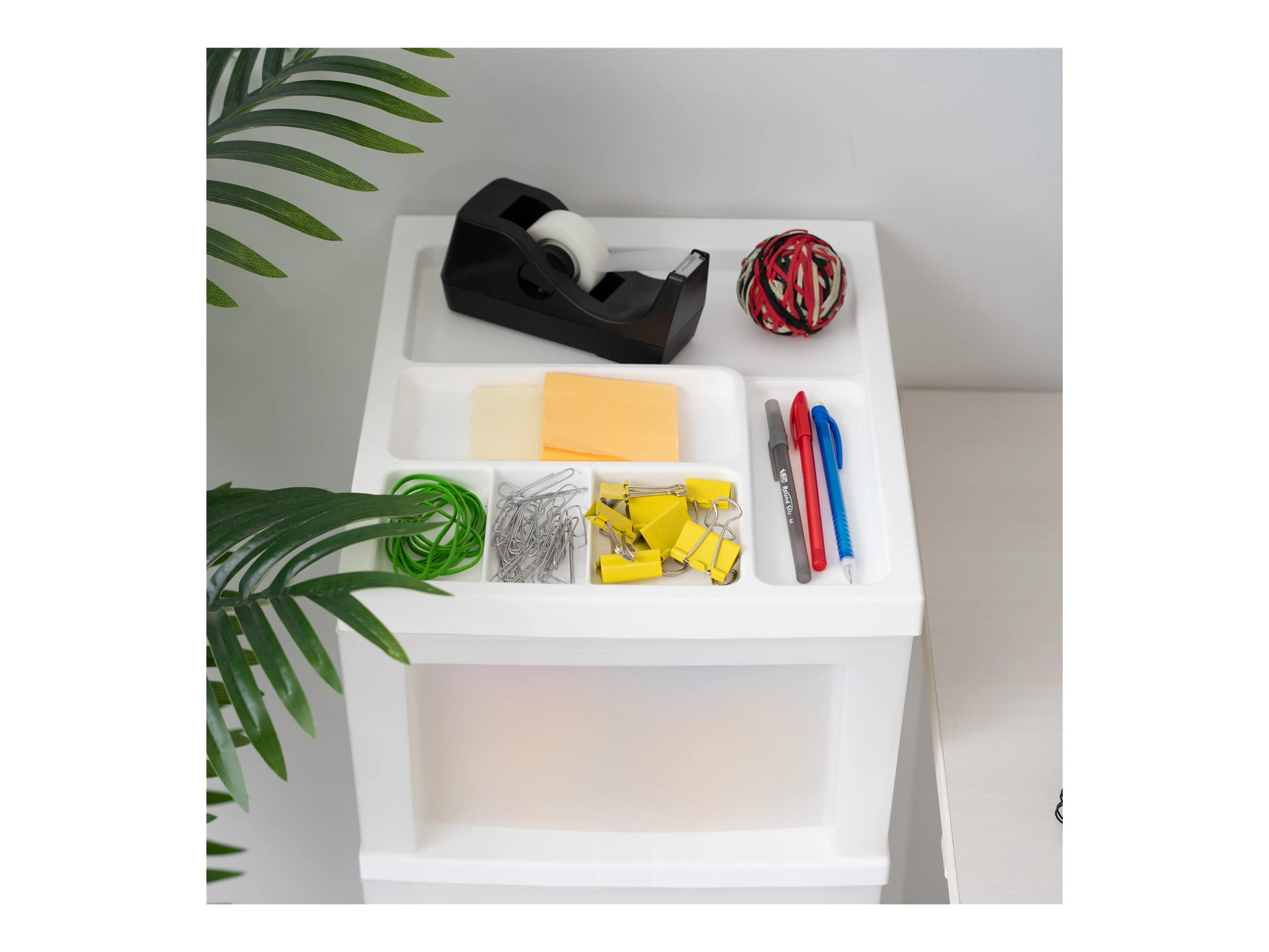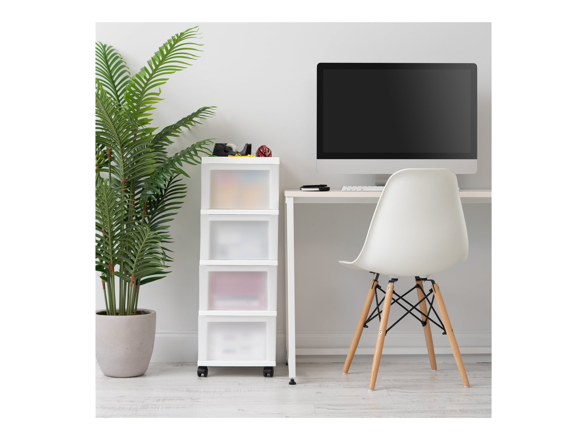 IRIS 4-Drawer Narrow Plastic Storage Drawer Cart with Organizer Top, White