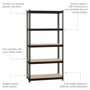 - Iron Horse 2300 Riveted Steel Shelving 5-Shelf Unit, 18D x 36W x 72H, Black
