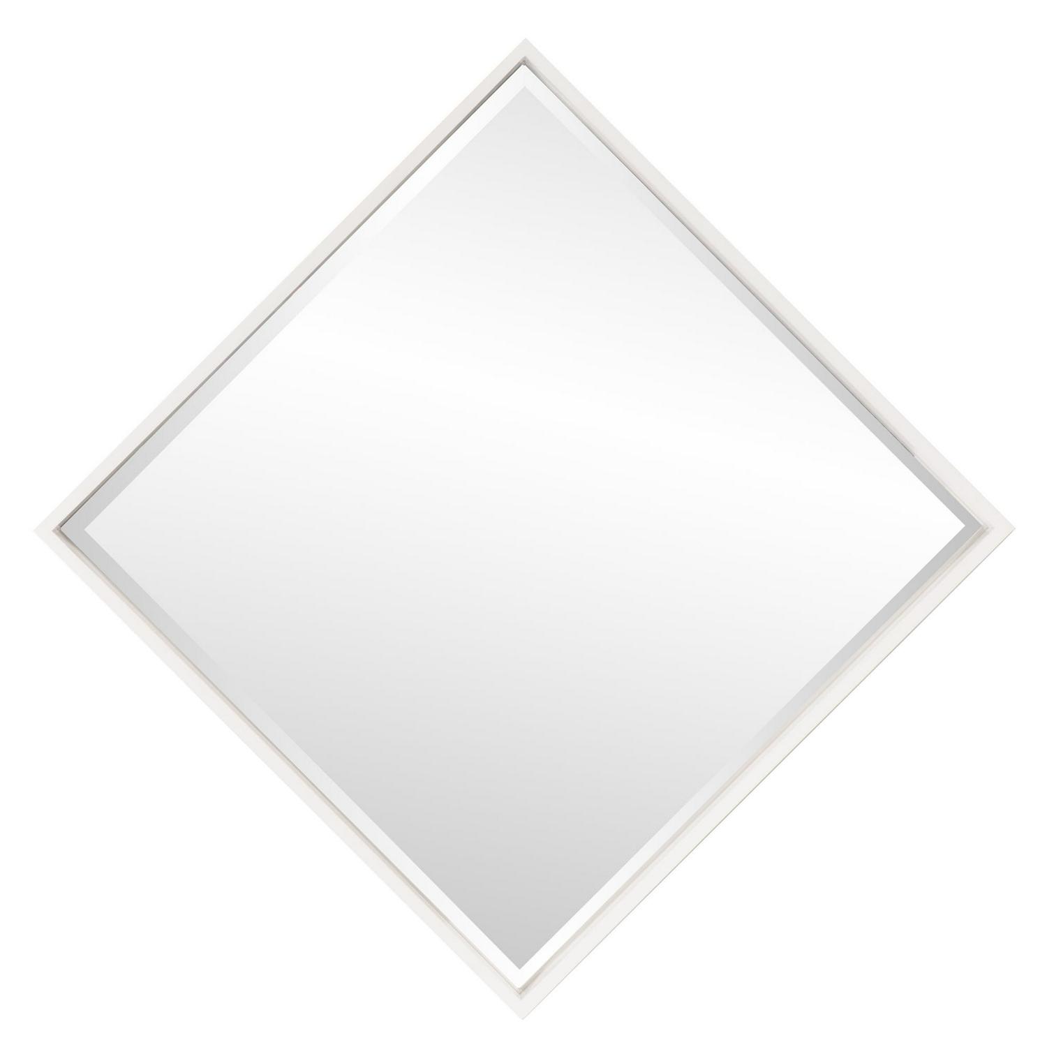 Isa is a simple piece but full of sleek, sophisticated style. It features a deep, square wood frame that is finished in a glossy white lacquer. The mirrored glass is set back in the frame giving it a shadowbox effect. It is a perfect focal point for an entryway, bathroom, bedroom or any room in your home. D-rings are affixed to the back of the mirror so it is ready to hang right out of the box! The mirrored glass on this piece has a bevel adding to its beauty and style. The Isa Mirror can be hung as a square or diamond.