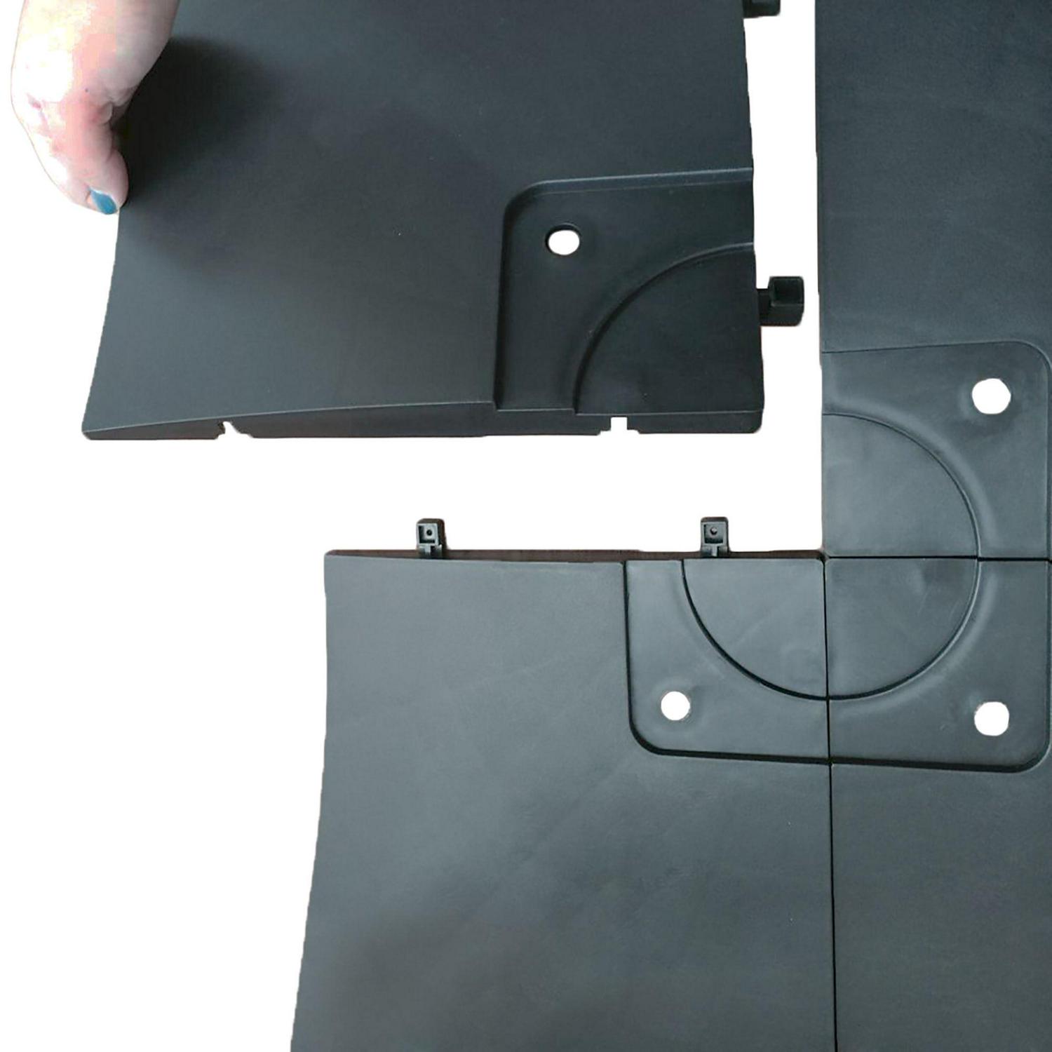 - Stylish scalloped resin base measures 19.6-in x 19.6-in