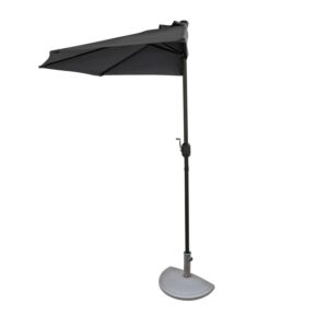 The portable Island Umbrella Lanai 9-ft Half Umbrella is the perfect solution for a tight space. It works great on a narrow deck or balcony, up against a wall, window or sliding door where a full umbrella just won t fit. This unique shade solution requires no attachment to wall or vertical surface. Although its shade capacity is half of a 9-ft Octagon umbrella, it s still packed with quality features at a very affordable price. Its durable construction, appealing profile, and unique crank and open system ensure ease of use and long lasting durability. Enjoy a relaxing time under shade, all day long, even in tight spaces. Base sold separately.
