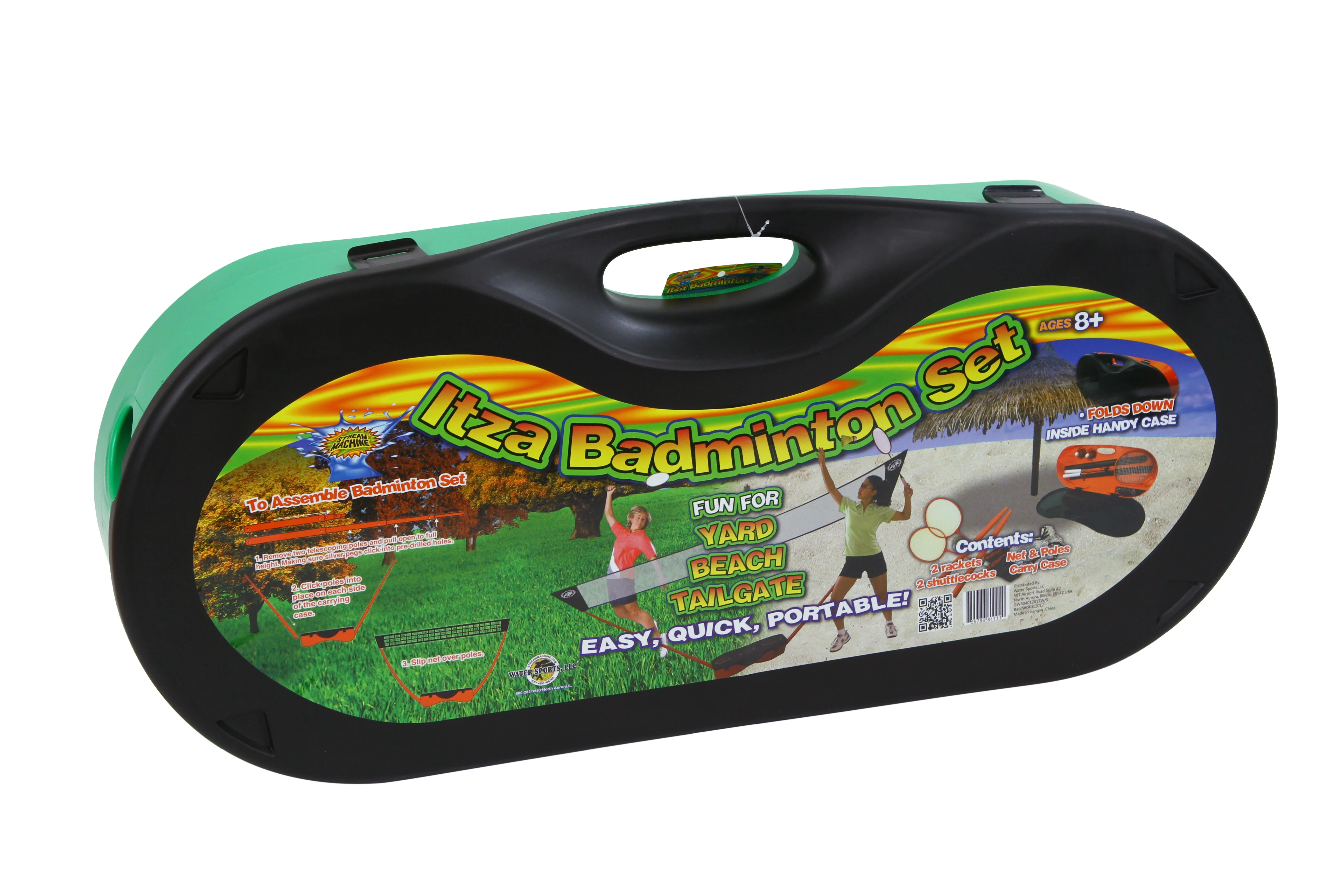 Liven up your backyard or swimming pool with the Itza Badminton Set! Including all of the essentials necessary to begin a rousing game of badminton, this set has everything you need to turn the ordinary into the extraordinary! Versatility is the key as this set can be maneuvered on the go. Regardless of whether you’re looking to play at the beach, in the backyard or in the water itself, everything is possible with the Itza Badminton Set! The following set includes a: 9′ L x 11′ W Net, 2 Telescoping Poles, 2 Rackets and 2 Shuttlecocks. Assembled product weight: 6.88 lbs.