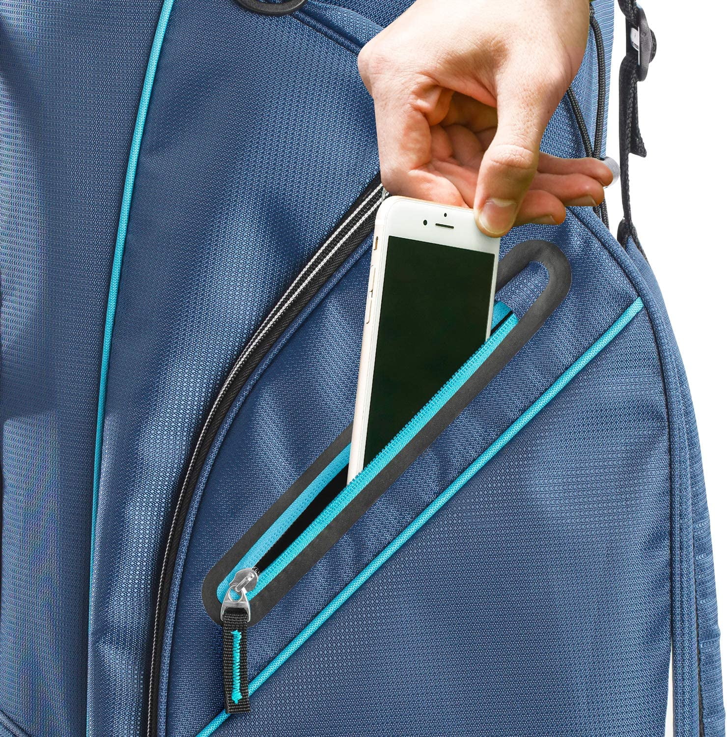 The Izzo Golf Ultra-Lite Cart Bag is the golf bag you’ve been waiting for! Weighing in at only 3.8 pounds, this lightweight bag is easy to carry and transport. Engineered with high durability polyester material, the Ultra Lite Cart Bag offers other great features such as a 14-way club organizing top with full length dividers, integrated SmartGRIP handle and 6 total storage pockets including a waterproof valuables pocket and customizable ball pocket.