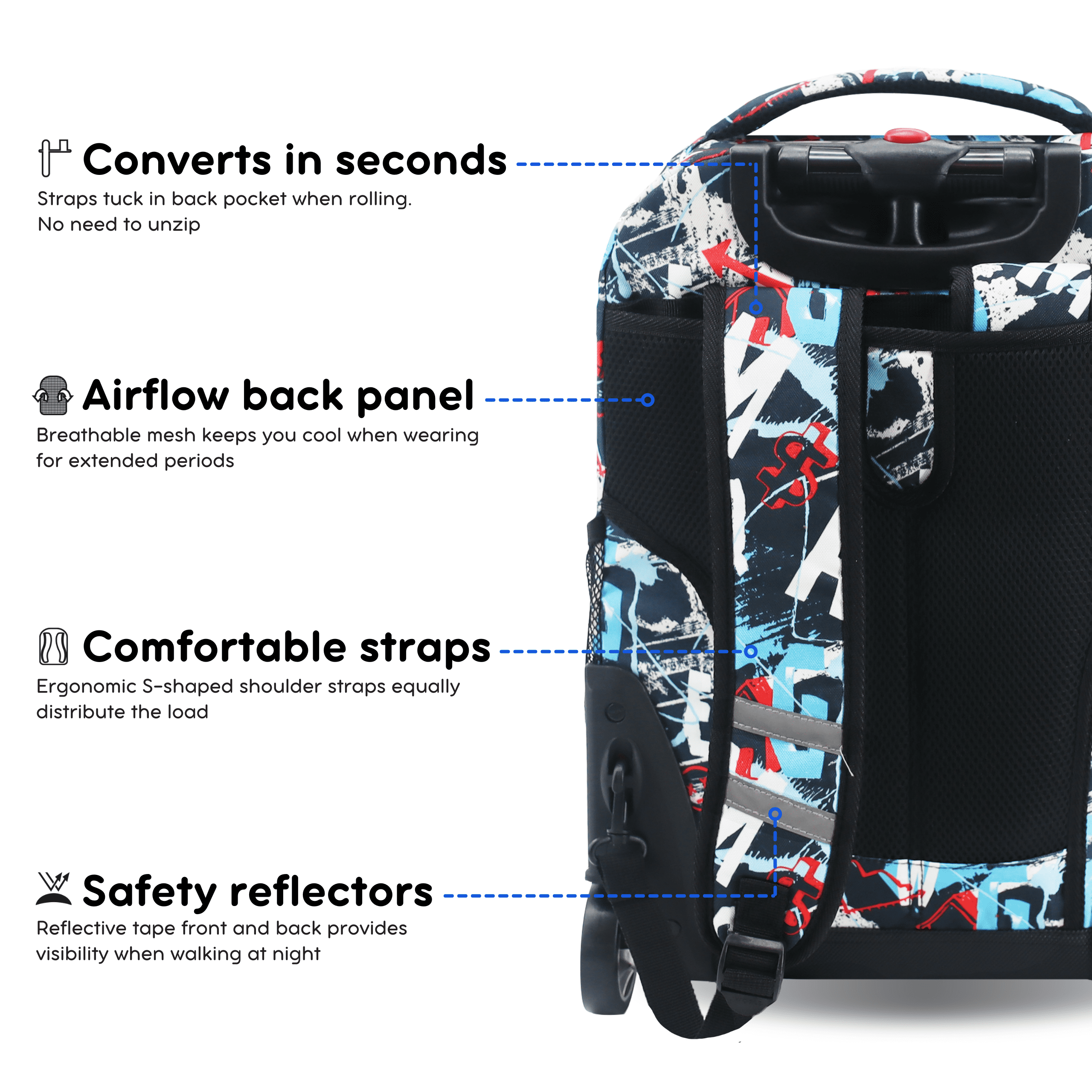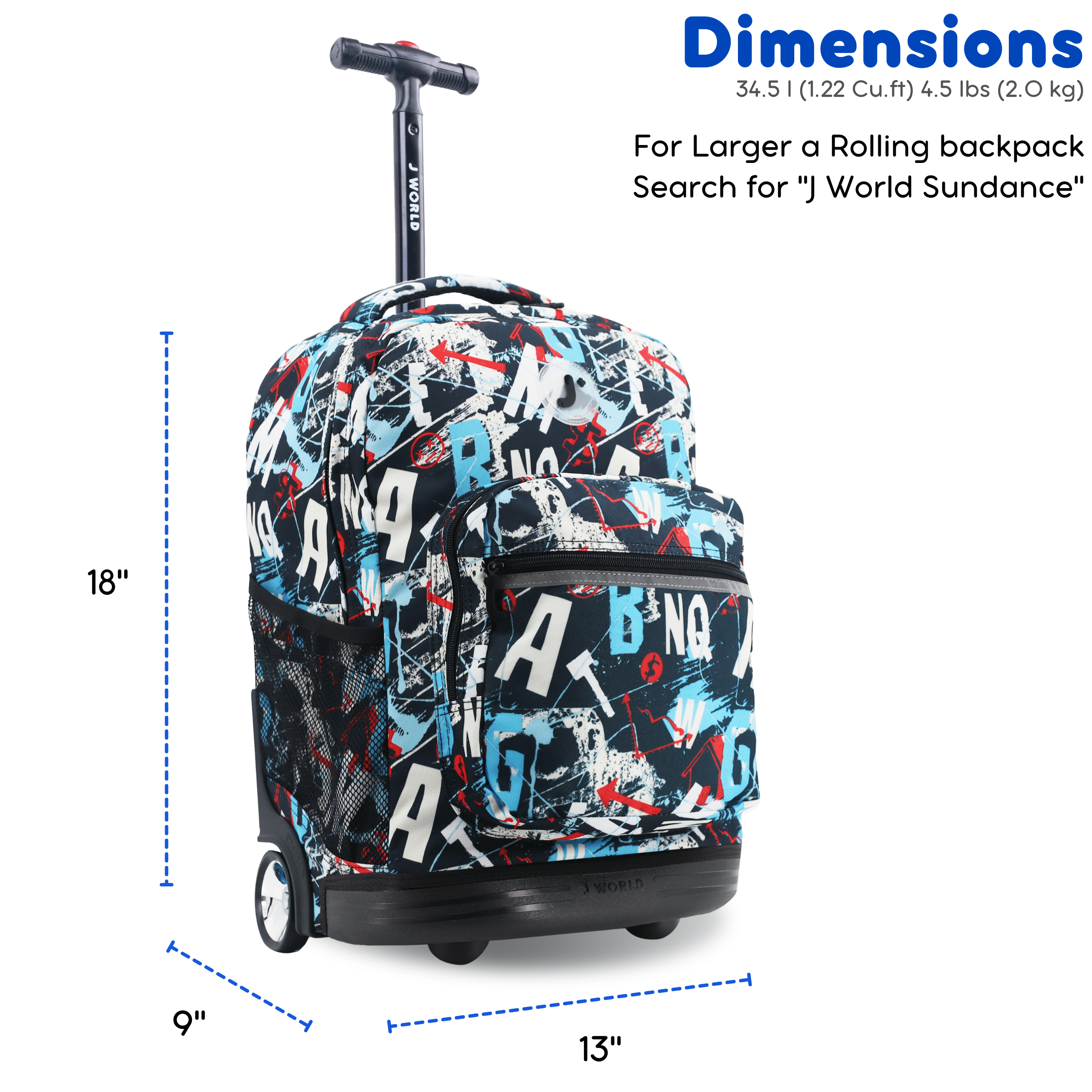 J World Boys and Girls Sunrise 18″ Rolling Backpack for School and Travel, Graffiti