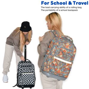 – ROLLING BACKPACK: Convertible wheeled backpack offers the load carrying ability of a rolling bag with wheels and the portability of a school backpack.