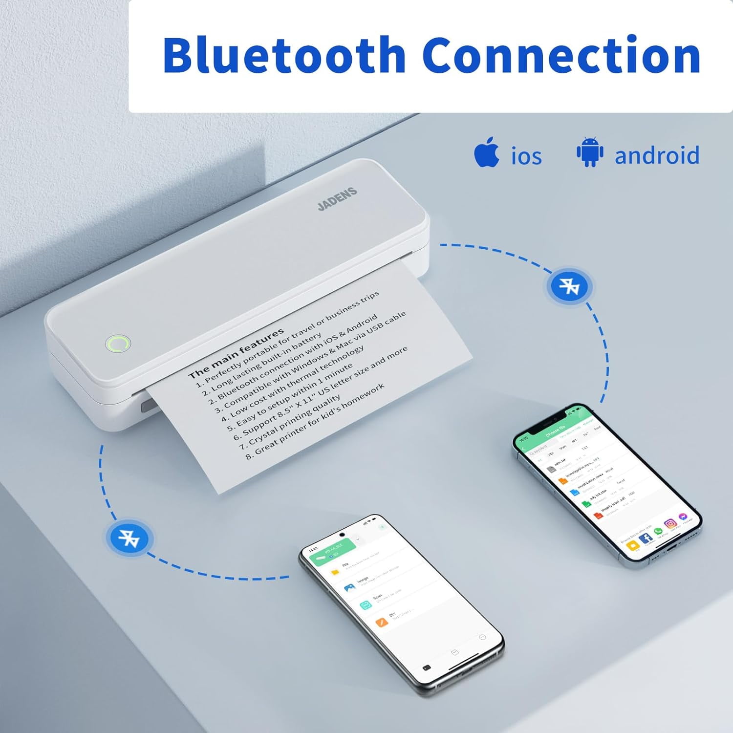 JADENS School Supplies Wireless Portable Printer for Travel, Bluetooth Thermal Printer, Compact Inkless Printer Compatible with Android, iOS and Laptop for Office Home, Support 8.5” x 11” US Letter