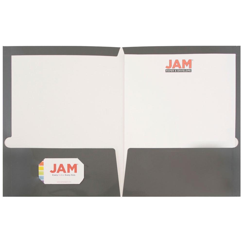 JAM Glossy Two Pocket Folders, Grey, 100/Pack