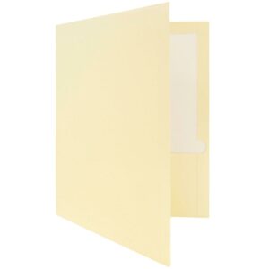 If you tickle the ivory, it means you play the piano. If you’re wearing ivory, you probably own some antique jewelry. If youxe2x80x99re sporting ivory folders at work or in the classroom, you’re one classy gentleman or lady. JAM Paper Ivory Glossy Two Pocket Presentation Folders are here to help you achieve or maintain the level of class you strive for. These folders are made of durable 100lb cardstock and measure 9 x 12 inches in size, making them great for standard sized documents. Each one features two pockets on the inside to help you more efficiently sort of secure your documents. The left-side pocket includes a convenient business card slot. These folders have an elegant glossy finish and are sold in packs of 100 folders! Use them to organize and carry all of your important documents and notes. Size: 9in x12in | Color: Ivory | Quantity: 100