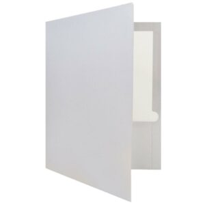 JAM Paper Silver Glossy Two Pocket Presentation Folders will bring some style and shine to any office or work space! Made of durable 80lb card stock, these folders will protect your documents as you carry them from place to place. These folders measure 9 x 12 inches, making them ideal for standard sized sheets of paper. Each one holds up to 20 sheets. This pack includes an even total of 100 folders! Each one contains 2 pockets on the inside. The pocket on the left side features a convenient business card slot. Use these folders in the office, in your classrooms, or in any place or situation that calls for organized papers! Size: 9inx 12in | Color: Silver | Quantity: 100