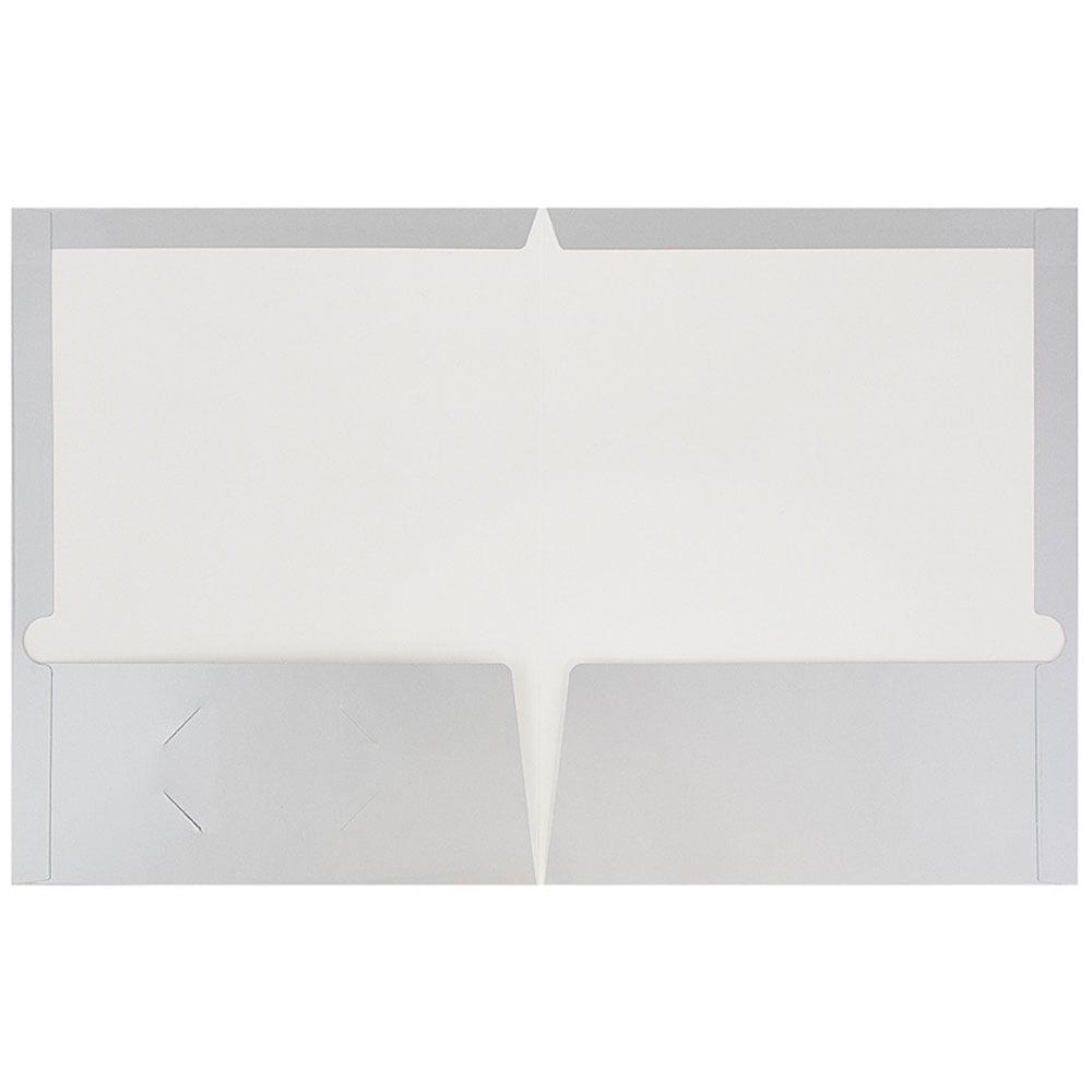 JAM Glossy Two Pocket Folders, Silver, 100/Pack