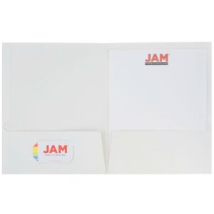 JAM Glossy Two Pocket Folders, White, 100/Pack