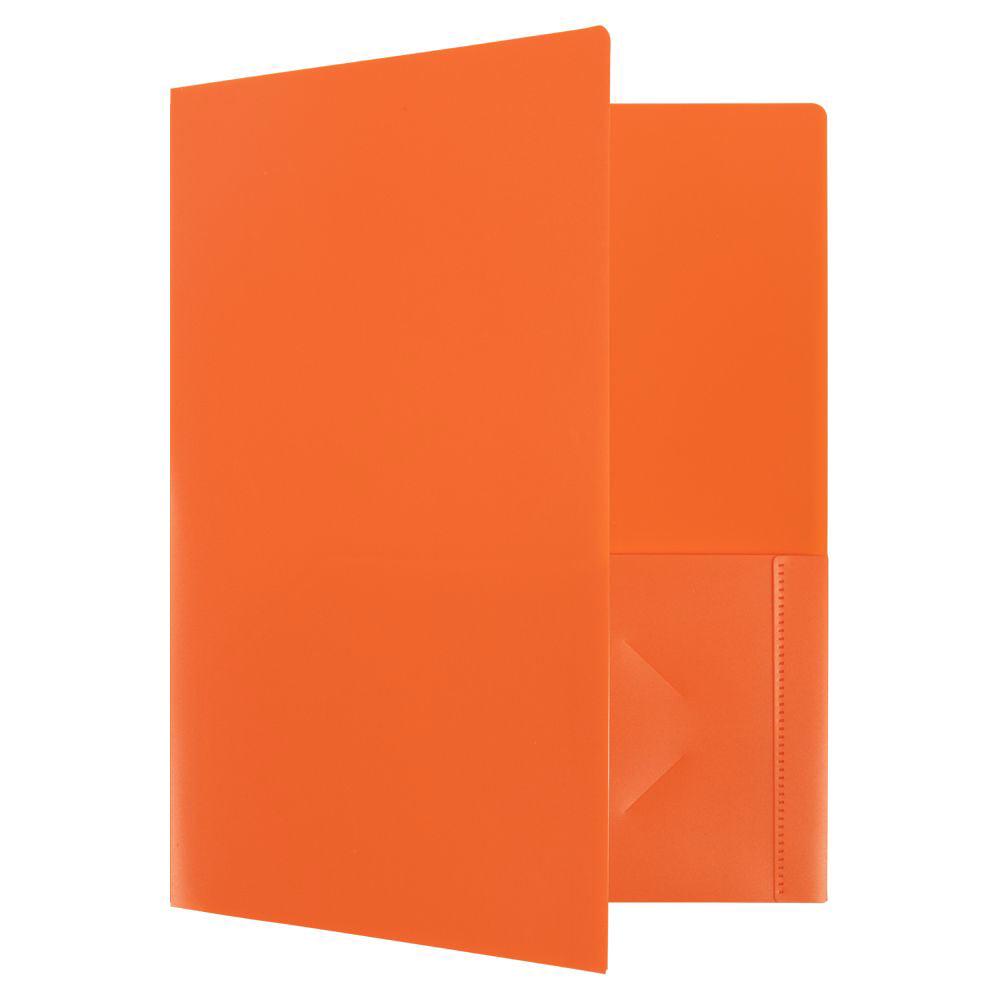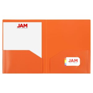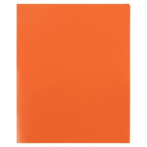 JAM Heavy Duty Plastic Two Pocket Presentation Folders, Orange, 108/pack