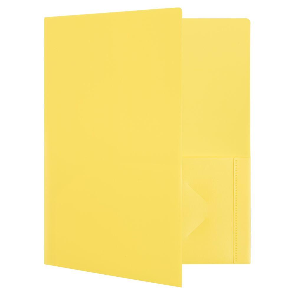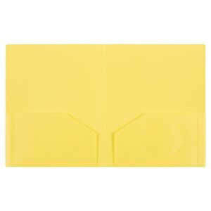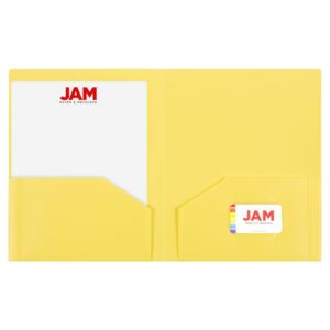 JAM Heavy Duty Plastic Two Pocket Presentation Folders, Yellow, 108/pack