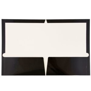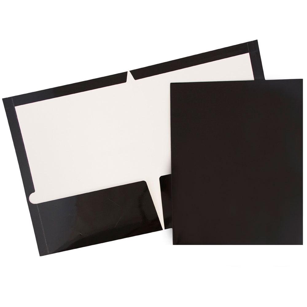 Are you feeling buried in papers and notes Is your office or study area overcome by a sea of loose documents Do you find it hard to keep track of your important and keep-worthy papers JAM Paper Black Glossy Two Pocket Presentation Folders are here to help! These 9 x 12 folders are made from durable 100lnb cardstock and feature a jet black, smooth, glossy finish. This pack includes 50 folders to help you organize multiple displaced documents. To help you more efficiently sort papers, each of these folders features two pockets in the inside. Each left-side pocket features a standard business card slot. Use these sleek folders at work, at school, or anywhere you need your documents to stay orderly, safe, and easy to find! Size: 9in x 12in | Color: Black | Quantity: 50