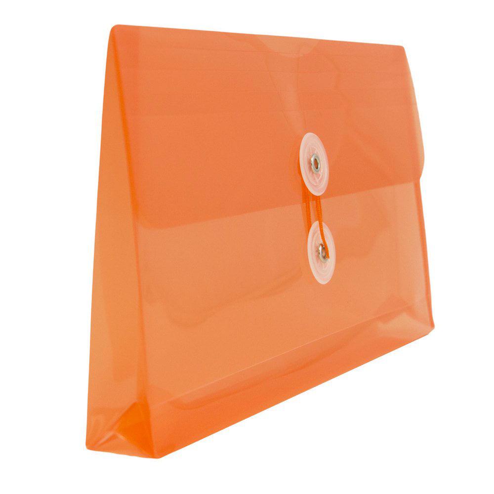 JAM Paper Orange #10 Plastic Business Envelopes with Button and String Tie Closures are great for organizing, storing, and protecting your letters, receipts, checks, bank slips, and more! Each envelope is made if sturdy plastic has a straight flap opening and a two button, string tie closure. Each one is 5.25in x 10in (about 5 x 10 inches) in size. Use them at the office to keep track of business purchases or at home to store letters or bills. Use them at lawn or bake sales to store cash! The durable composure and vibrant orange color of these envelopes allows you to provide protection for you documents while helping them to stand out for easier organizing and finding! This 108 pack gives you enough for the whole office.Size: 5.25in x 10in