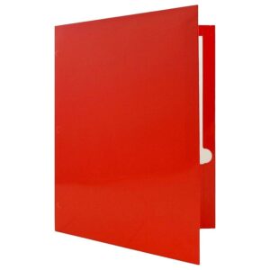 Are you the kind of person who sits at the back of the class and doesn’t talk much of the office, or who answers every question and loves to be heard If you are the later, why not show your passion for your work through your school or office supplies with some bright red folders JAM Paper & Envelope Red Glossy Two Pocket 3 Hole Punches Presentation Folders feature an eye-catching, fire-truck red, glossy finish! This pack contains a large total of 100 folders! Each one is made out of 100lb cardstock and features two pockets on the inside to help you organize and sort your documents. The pocket on the left side includes a business card slot. Three punch-out holes are featured on the left side of each folder for placing and securing them into 3-ring binders. Don’t blend in with the crowd over be overlooked. Stand out with these red folders! Size: 9inx 12in | Color: Red | Quantity: 100