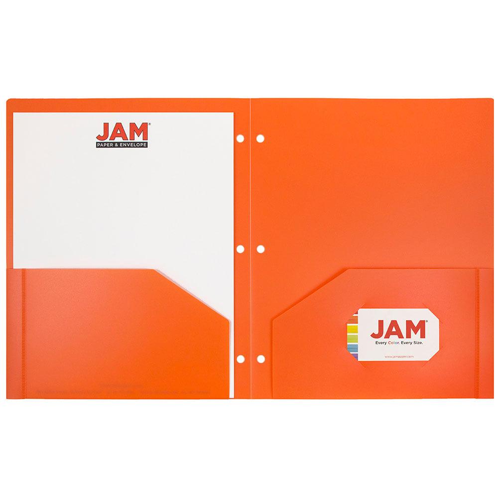JAM Paper 2 Pocket 3 Hole Punched Plastic School Folders help to keep homework and important documents neat and in place. Measuring 9.5 x 11.5 inches, these folders are made out of smooth, durable, flexible plastic and are designed to keep your documents secure. They feature 2 pockets and 3 hole punched slots for binder accessibility, making them even easier to carry around. And with such a wide color selection, it will be easy to select your favorite, and will help you become more organized. Available in colors: Red, Blue, Green, Lime Green, Purple, Orange, Yellow, Pink, Black, and Clear.