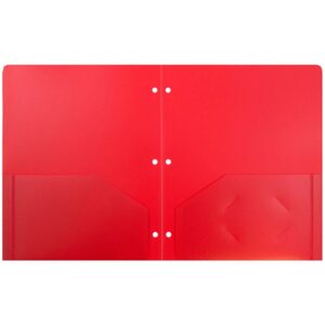 JAM Paper 2 Pocket 3 Hole Punched Plastic School Folders help to keep homework and important documents neat and in place. Measuring 9.5 x 11.5 inches, these folders are made out of smooth, durable, flexible plastic and are designed to keep your documents secure. They feature 2 pockets and 3 hole punched slots for binder accessibility, making them even easier to carry around. And with such a wide color selection, it will be easy to select your favorite, and will help you become more organized. Available in colors: Red, Blue, Green, Lime Green, Purple, Orange, Yellow, Pink, Black, and Clear.