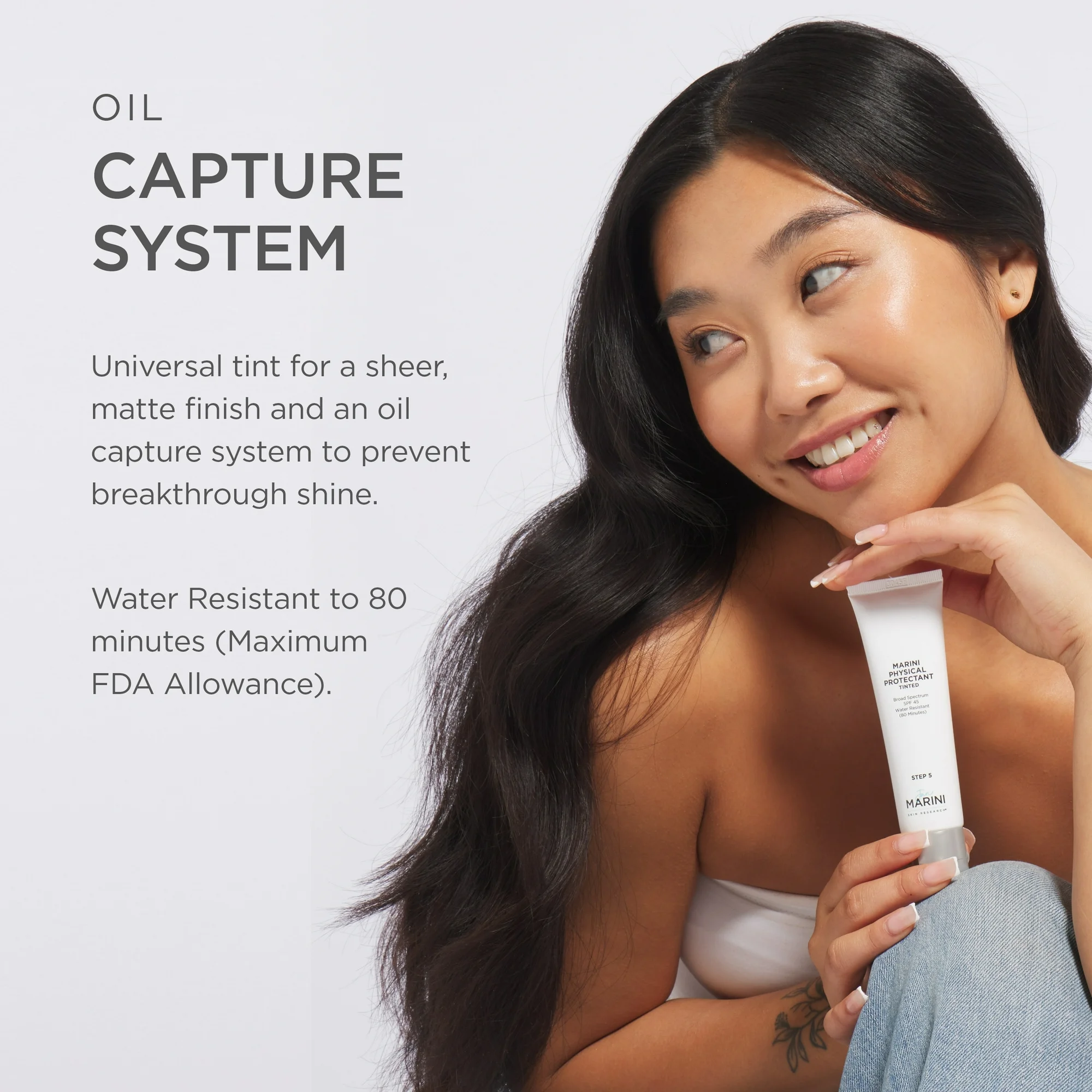 Marini Physical Protectant SPF 45 utilizes purely physical filters zinc and titanium dioxide for broad spectrum UVA and UVB protection to decrease the risk of premature skin aging. Green Tea extract, alpha-bisabolol and co-enzyme Q10 help to improve overall skin quality, soothe the skin and provide added antioxidant protection againt free radical damage caused by the sun and environmental stresses This weightless sunscreen also features a universal tint and microscopic oil absorbing particles for additional oil control with a sheer, matte finish.Brand StoryJan Marini Skin Research (JMSR) is a leading professional skin care manufacturer. Carried by physicians worldwide, JMSR is known for its innovative, award-winning technologies and dedication to results-driven solutions.