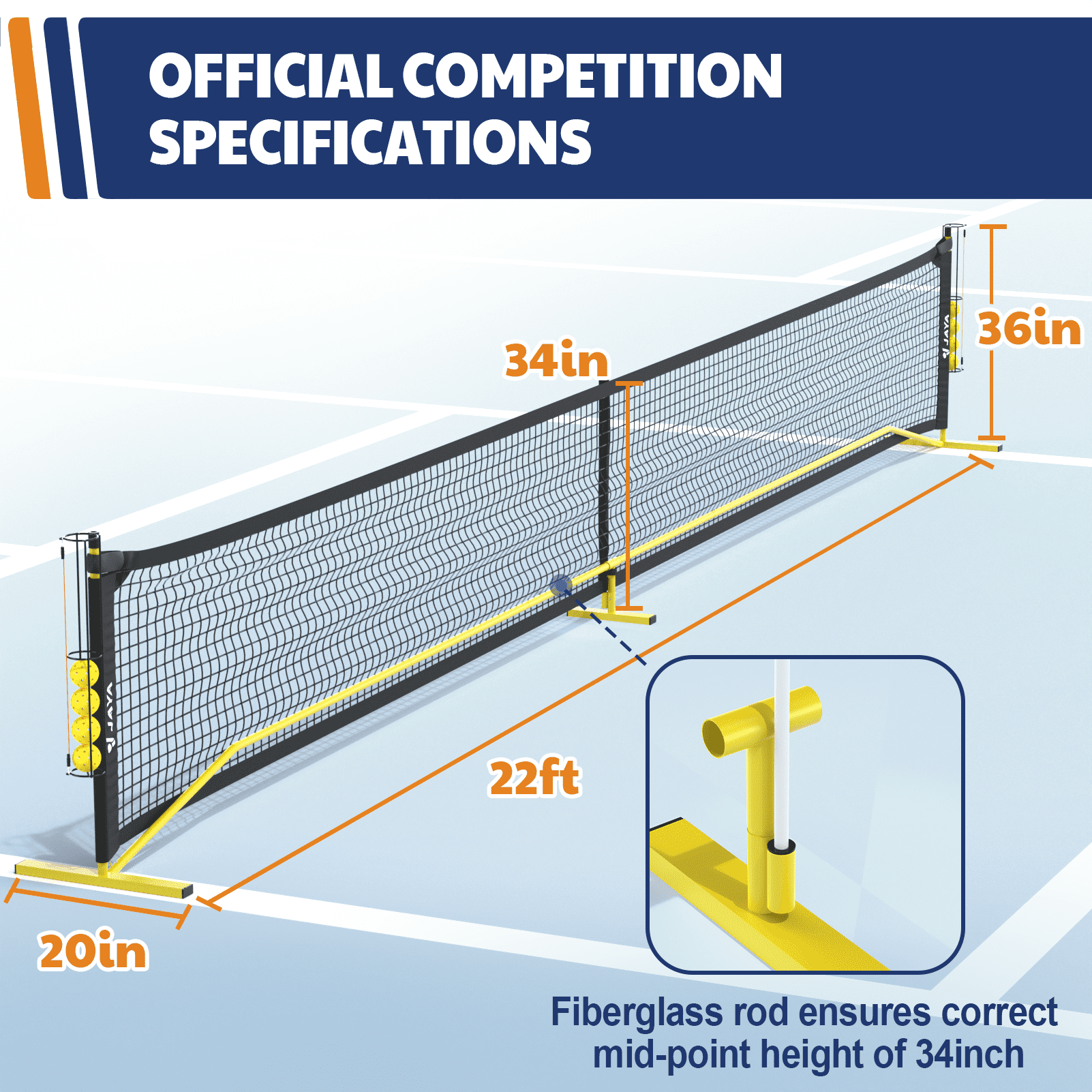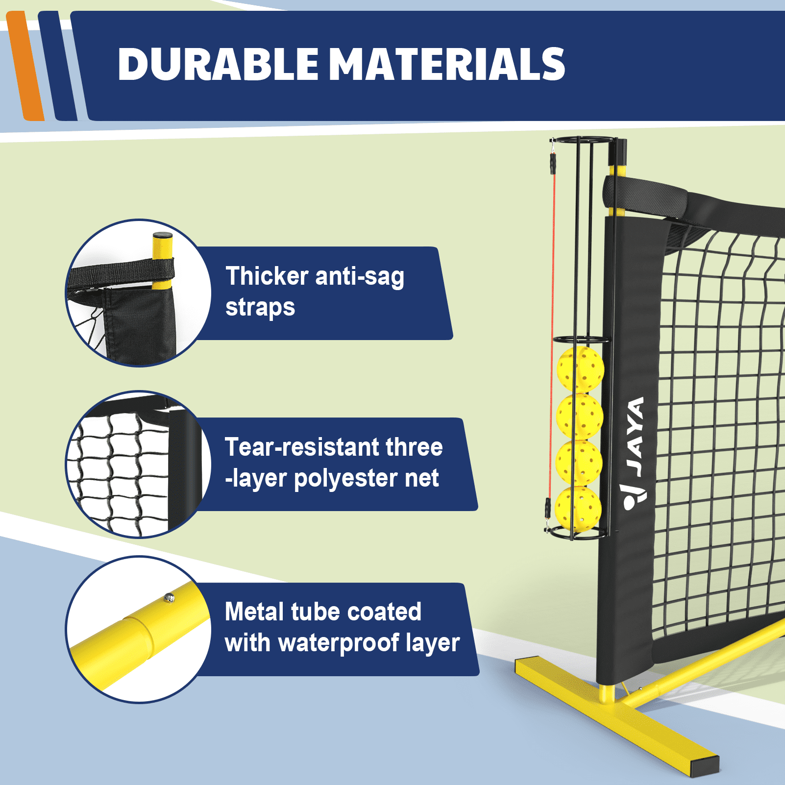JAYA SPORTS Portable Outdoor Pickleball Net with Carrying Bag, Black/Yellow, 22ft