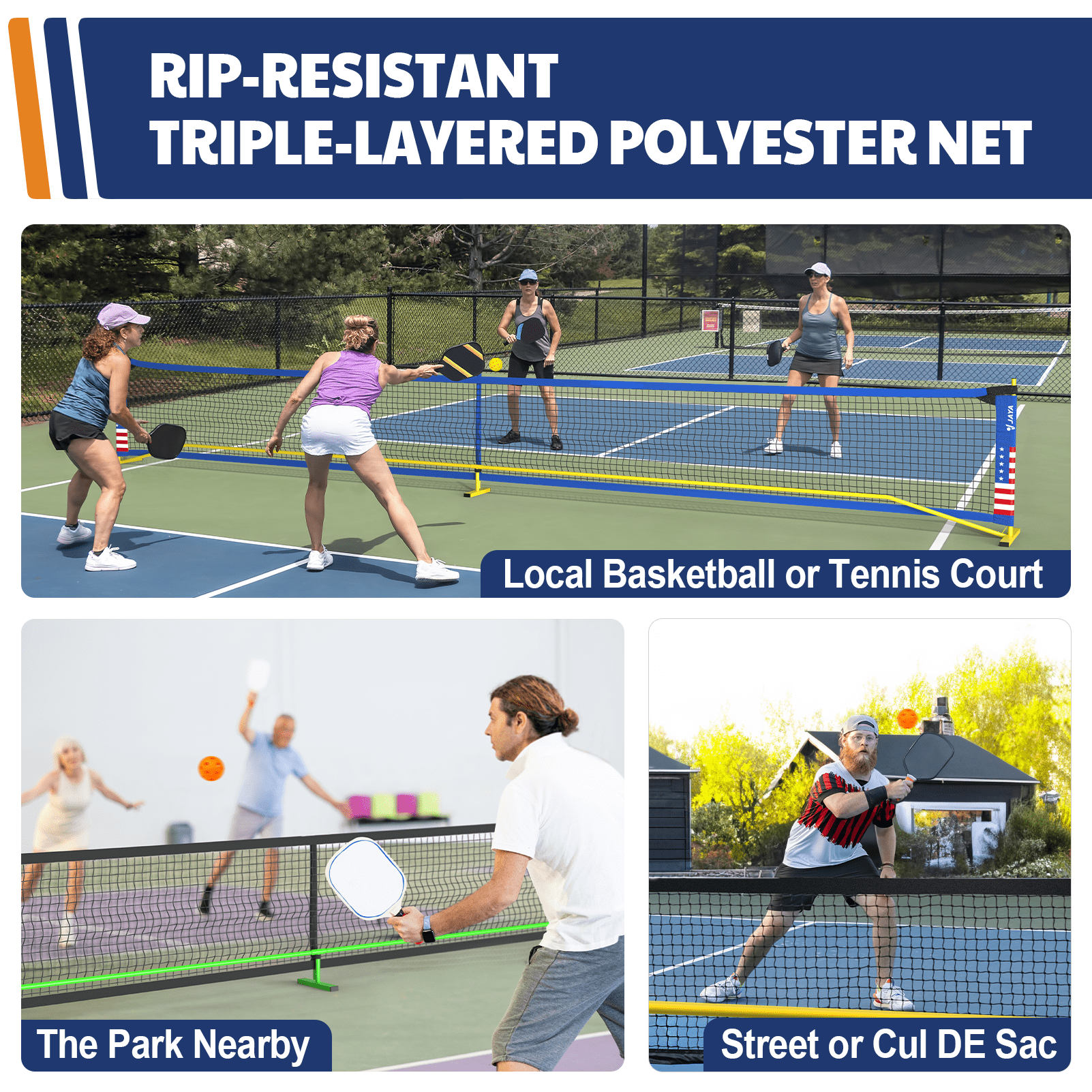 JAYA pickleball net with Carrying bag are easy to store and carry, and simple to assemble, so you can host an exciting game of pickleball anytime, anywhere. The sturdy and durable pickleball nets will last you a long time without having to worry about replacing the nets,if you have any questions, you can ask us and we will get back to you immediately.