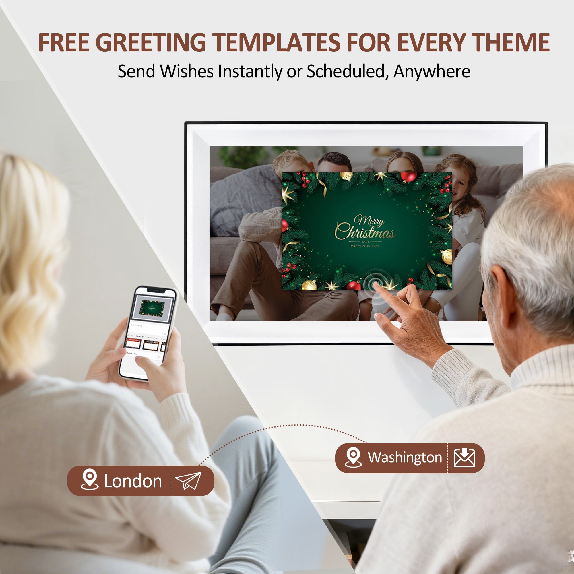 The Jazeyeah 15.6-inch WiFi digital picture frame features a large 1920×1080 FHD IPS touchscreen display that delivers sharp, vibrant visuals from any angle. It supports multiple image and video formats, and comes with a free app to easily share photos and videos with family and friends. The user-friendly design makes it simple to use for all ages, and the frame can hold up to 80,000 photos with its 32GB storage. Suitable for various occasions, this digital frame makes a great gift for grandparents, moms, birthdays, weddings, and the holidays.