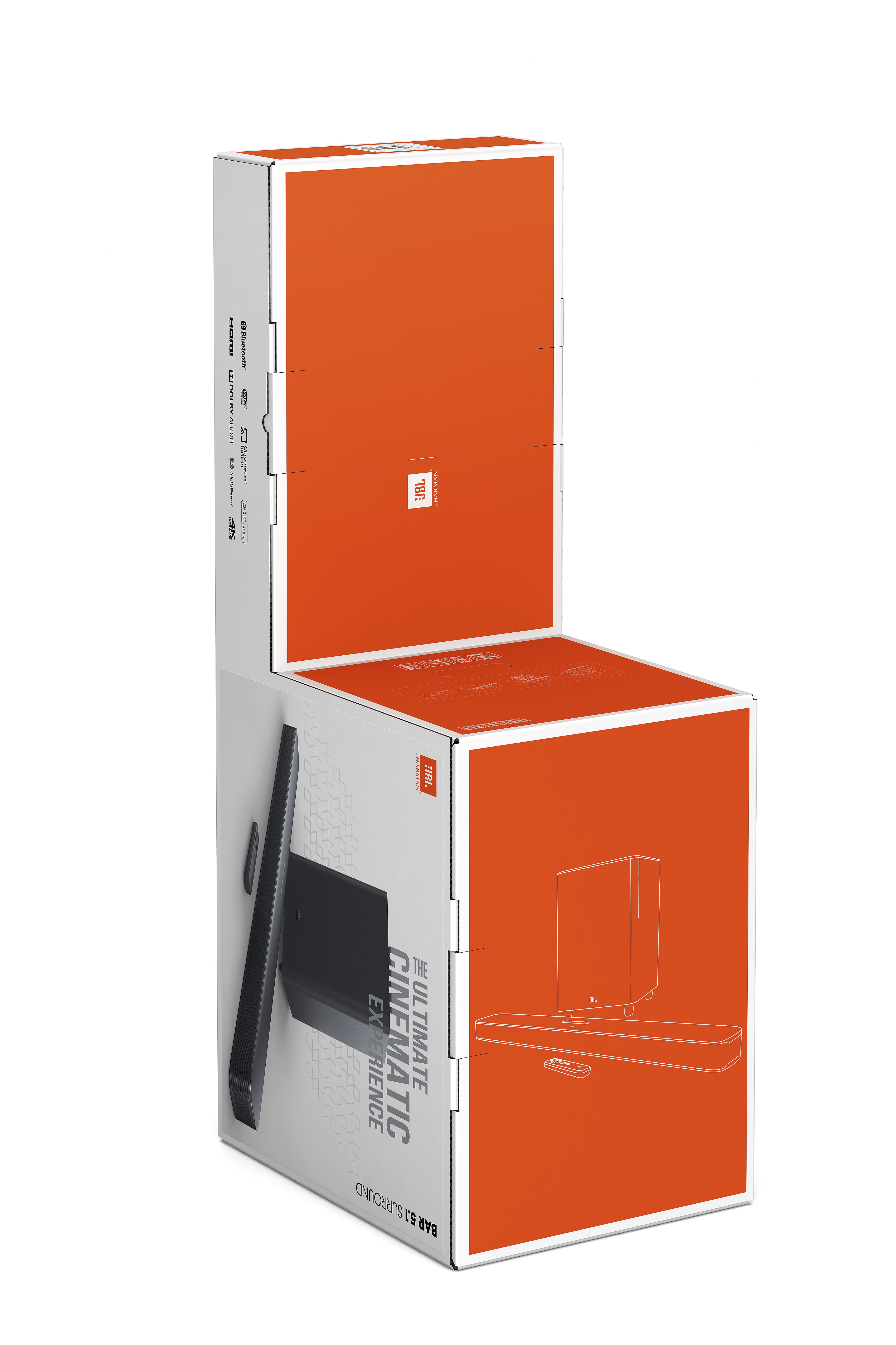 JBL MultiBeam technology brings the ultimate cinematic experience to your home. No extra speakers or wires are needed With 550 watts of system output power, experience your movies like never before Punchy, precise bass from a mighty 10″ wireless subwoofer brings the action to action movies and ensures any soundtrack sounds epic Panoramic surround sound