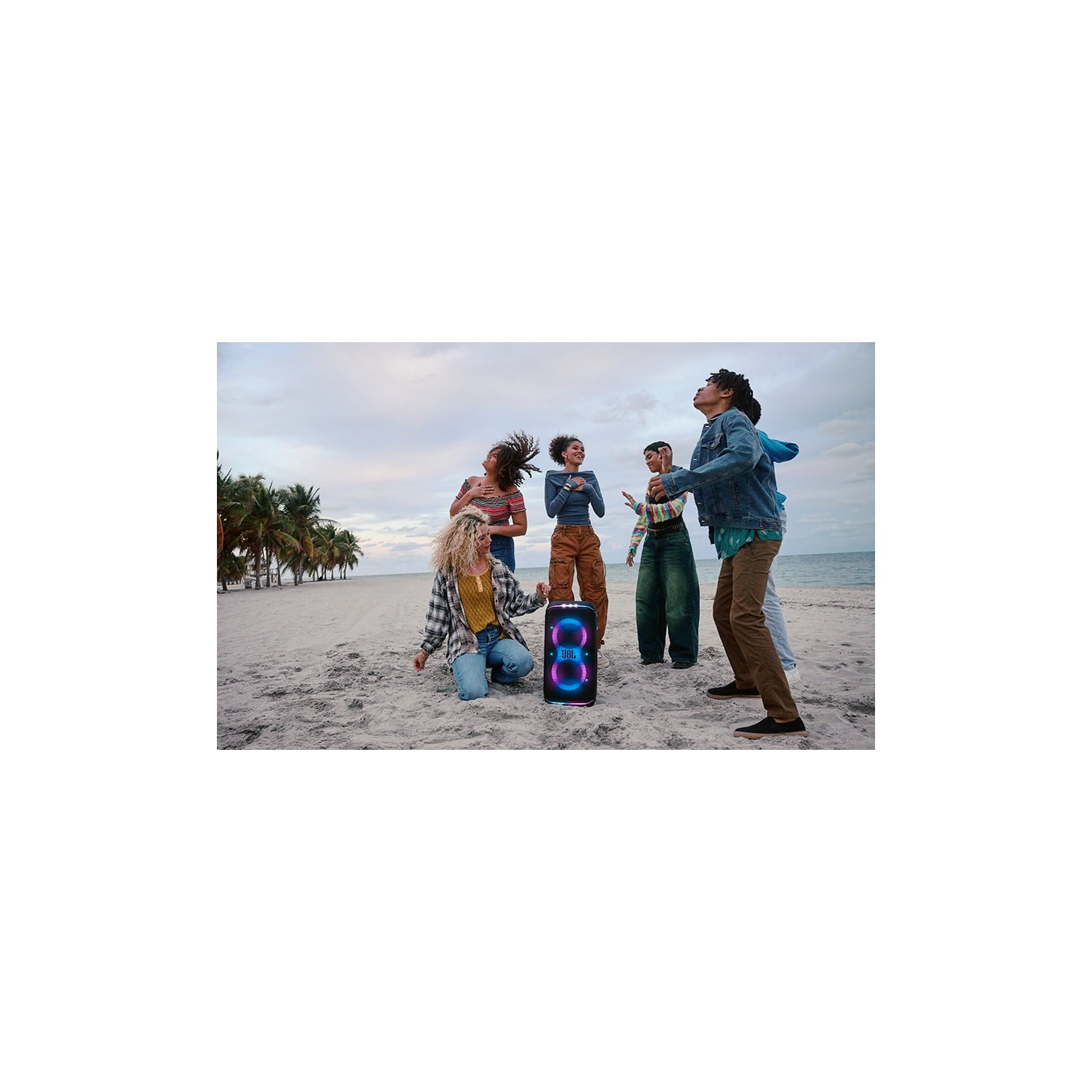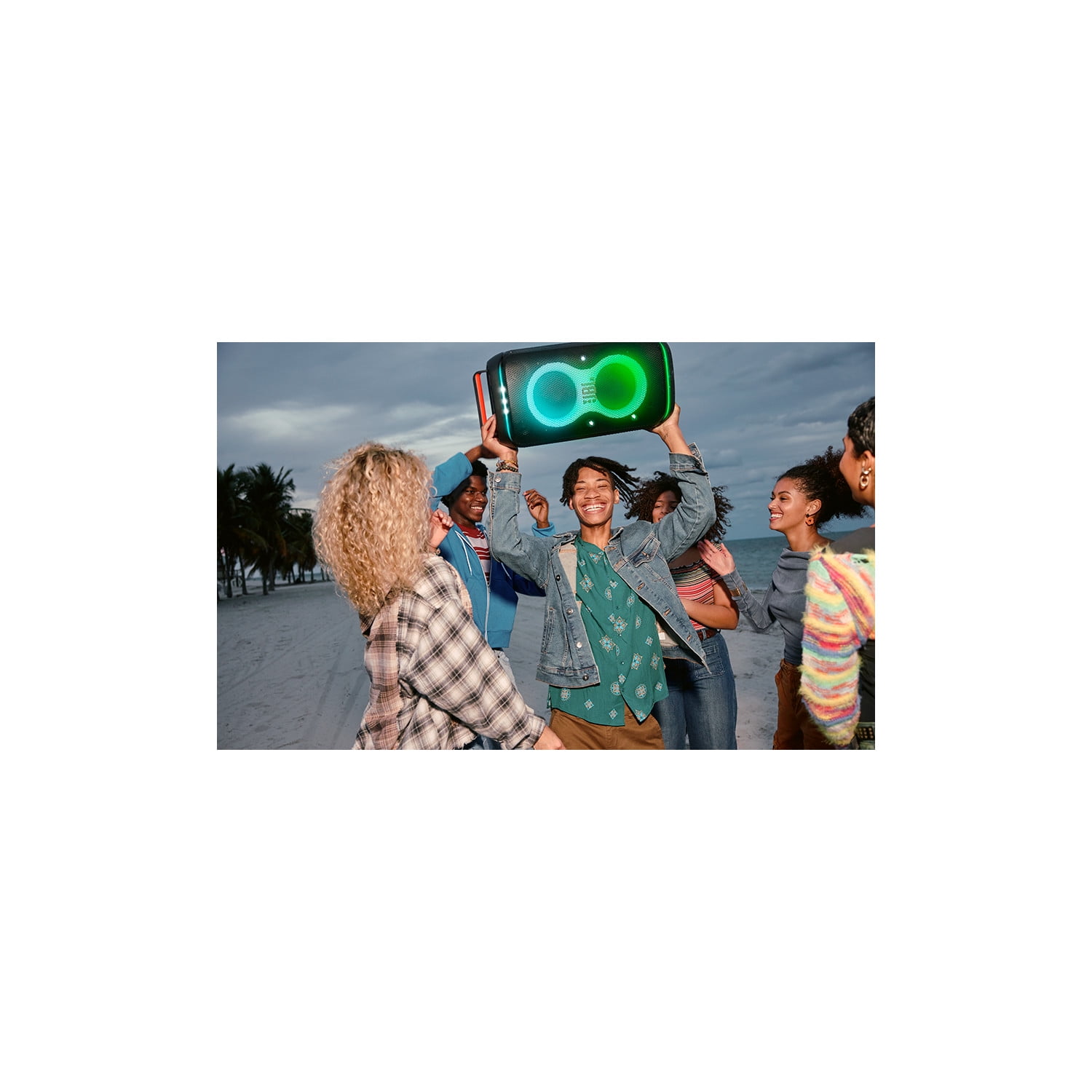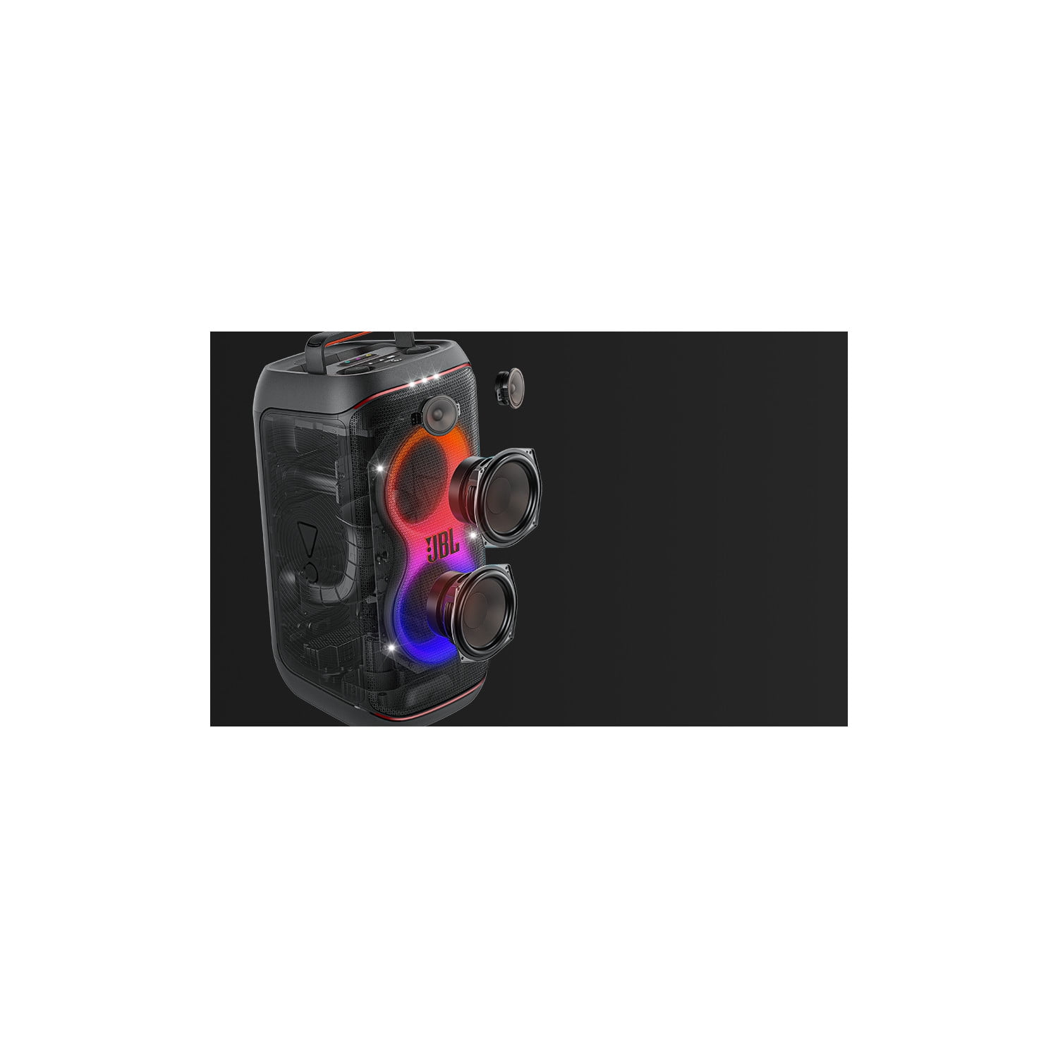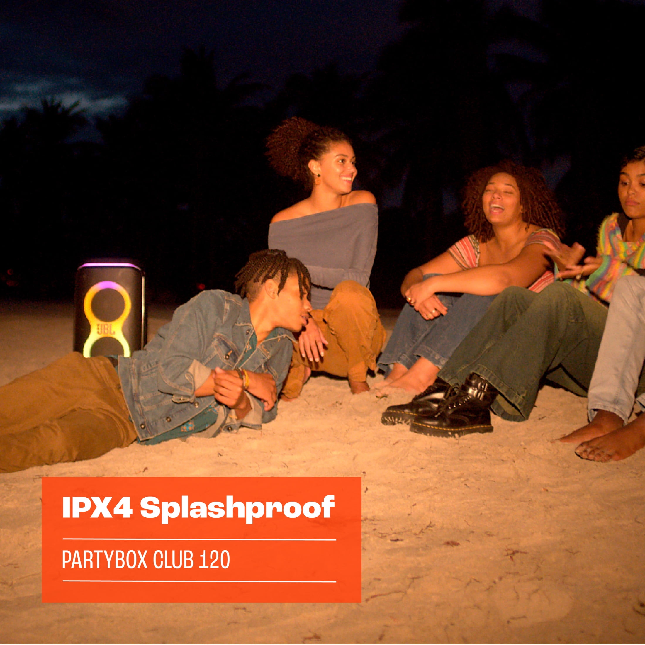 Powerful JBL Pro Sound Rock out to powerful JBL Pro Sound that delivers clear, dynamic sounds and deeper bass even at top volume. Futuristic lightshow Pair that amazing sound with a thrilling futuristic lightshow featuring starry lights, cool light trails, and strobe light effects, all synced to your beat. Up to 12 hours of play time Dance from noon to midnight with up to 12 hours of play time, on a single charge. And if you’re just getting warmed up, simply swap out the replaceable battery* and keep going. Plus, 10 minutes fast charge gets you an extra 80 minutes of playtime. * Additional replaceable battery sold seperately Foldable handle A folding handle makes the PartyBox Club 120 easy to take with you anywhere. The speaker’s ergonomic body is designed with even weight distribution so it’s easy to carry. Splash proof Whether you’re partying with friends in the park or by the seaside, the JBL PartyBox Club 120 is IPX4 splashproof, means a little rain won’t stop the fun. AI Sound Boost Get the most out of your speaker. AI Sound Boost analyzes the incoming signal in real time while simultaneously using an AI algorithm to predict loudspeaker movement and power response. It pushes the driver to its maximum capability, fully exploiting the dynamic range for better and more powerful sound. It also reduces distortion even at high volume, maximizing the bass output and overall loudness. Multi-speaker connection by Auracast™ Want even more roaring Original JBL Pro Sound? Stereo pair two speakers for a wider sound stage. For your biggest events, multiple JBL Auracast-enabled PartyBoxes can be connected wirelessly using Auracast™. Dual Mic & Guitar Inputs Bring live talent into the mix. It’s easy to sing and play along using the guitar and dual mic inputs. With karaoke EQ tuning and the built-in lightshow, everybody will sound—and look—like a superstar. JBL PartyBox app The JBL PartyBox app makes it easier than ever to add interactive party effects, control your music, adjust EQ settings, and customize the colors and patterns of your light show for the perfect party vibe. Made in part with recycled materials The JBL PartyBox Club 120 incorporates post-consumer recycled plastic. It’s also packaged in FSC-certified paper printed with soy ink.