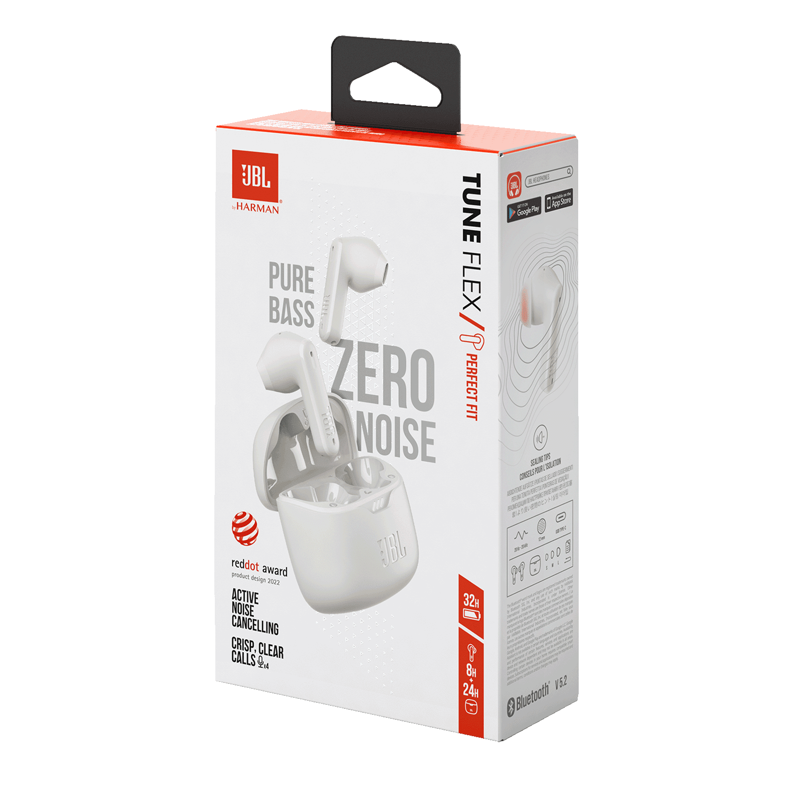 JBL Pure Bass Sound Smartly designed 12mm drivers enhanced by the stick form factor deliver JBL’s Pure Bass Sound so you’ll feel every pulsing beat. Active Noise Cancelling with Smart Ambient Hear more of what you want, less of what you don’t. Active Noise Cancelling technology with 2 microphones lets you minimize audio distractions. With Ambient Aware, you can tune into your surroundings at any time so that you feel safer when you’re out in the world, while TalkThru lets you stop for a quick chat without having to remove your headphones. 4 mics for perfect calls Enjoy hassle-free, hands-free calls in stereo. The Tune Flex are equipped with 4 microphones, so you’ll always be heard with perfect clarity. Never hesitate to take or make a call again. And with VoiceAware, you can choose how much of your own voice to hear by controlling the amount of mic input routed back into your earbuds. Up to 32 hours of battery life Never miss a beat with 32 (8+24) hours of battery life or 6 hours, plus 18 hours in the case when noise cancelling is engaged. Need a boost? Speed Charge for just 10 minutes to get 2 hours of playtime. Water resistant & sweatproof Don’t be deterred by bad weather. Thanks to IPX4 water resistance and sweat proofing, there isn’t a workout or downpour the Tune Flex can’t handle. All-day fit & comfort Never be without your music. The stick open design ensures comfort without pressure and natural sound awareness. Additional Sealing tips in 3 sizes together with the Sealing Ear tip mode in the App allow you to create environmental sound sealing without compromising the light, sleek design of these earbuds. JBL Headphones App The JBL Headphones App lets you enjoy your music your way. Customize your listening experience and the touch control gestures, find your earbuds, control the environmental noise and the Smart Audio & Video modes. Download the App for free and discover how much more you can do.