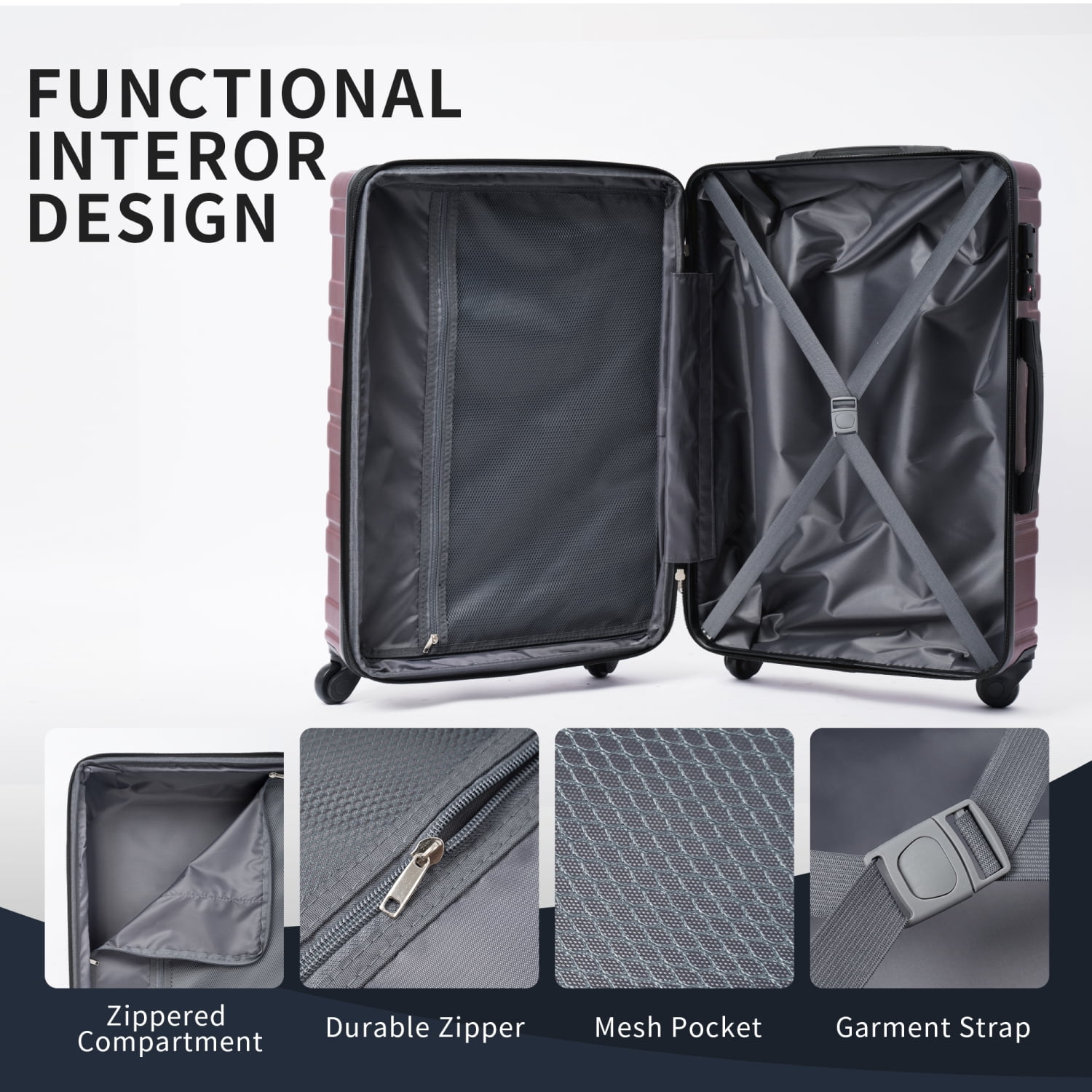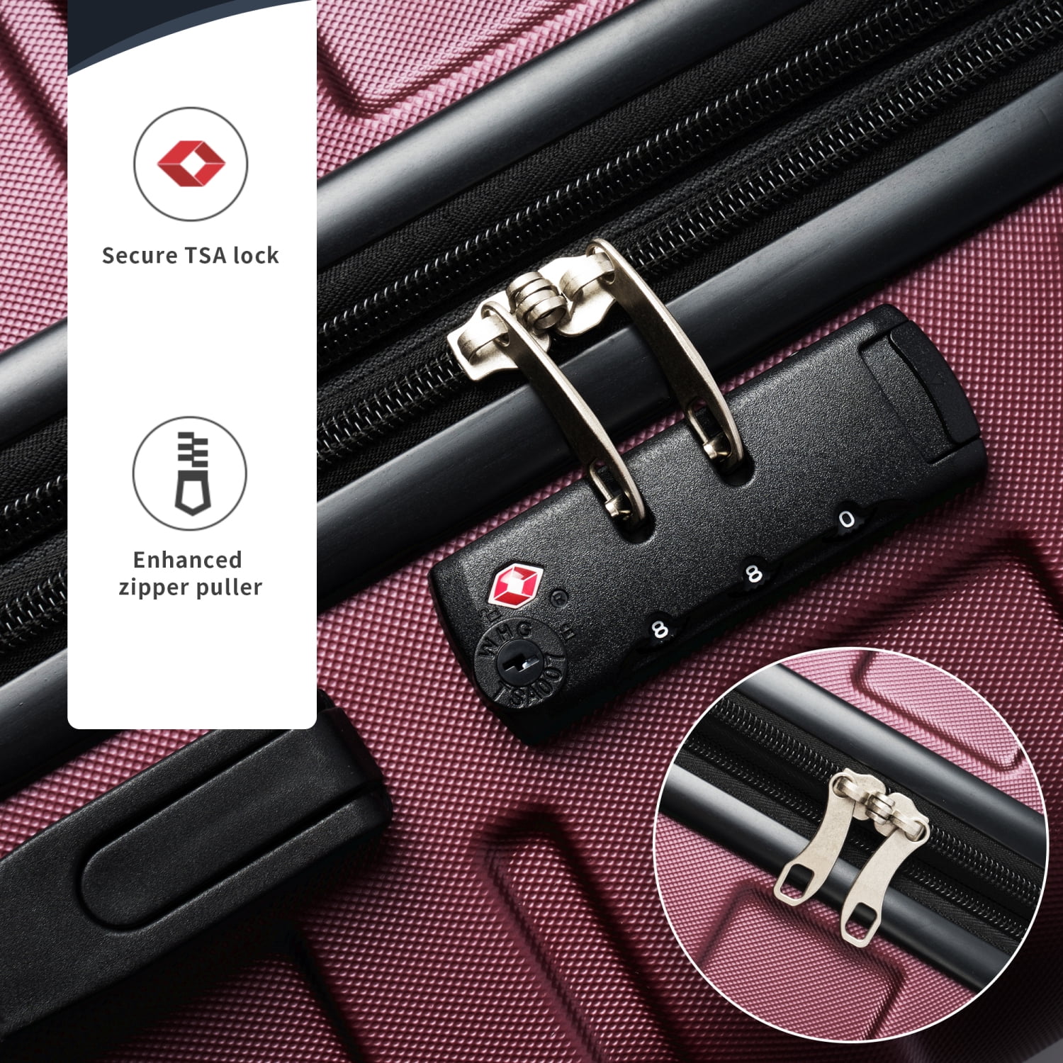 [Lightweight and ] – 100% ABS construction ensures long-lasting usage and durability. [TSA Approved Lock] – 3-Digit TSA combination lock helps keep your property . 3-step telescoping handle meets the needs of different heights and is ergonomically designed to be easily raised and lowered. [Roomy Interior] – Includes spacious, highly functional interior with mesh pockets and elastic tie-down straps. [Easy Maneuvering] – 4 silent -degree rotating wheels for easy maneuverability and smooth movement. wheels allow your suitcase to stay upright while getting pushed, pulled and dragged in any direction. [Suitcase Pack] Each set is shipped with each suitcase inside one another to save space for your convenience.