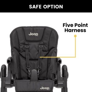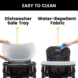Jeep by Delta Children Classic Convertible 2-in-1 High Chair for Babies and Toddlers with Adjustable Height, Recline and Footrest – Dishwasher Safe Meal Tray, Black